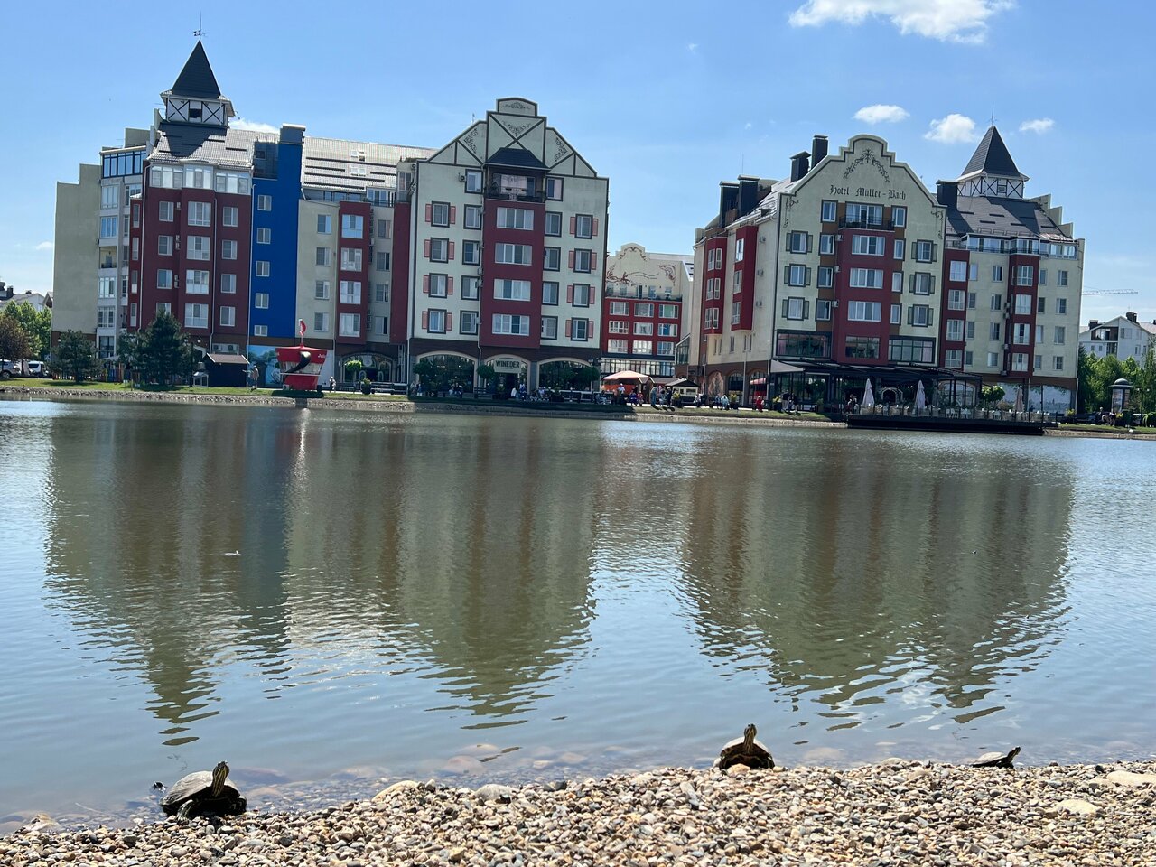 Остались с семьей в отеле после посещения ресторана Пауланер, который находится на первом этаже. Были приятно удивлены обходительным персоналом и чистотой в номерах. В самой немецкой деревне особо не из чего выбрать, Мюллер Бах единственный отель в округе. Остались довольны! На следующий день приятно провели время на озере! Покатались на катамаране, покормили лебедей и уток. На память осталось большое количество фотографий с прекрасной локации.