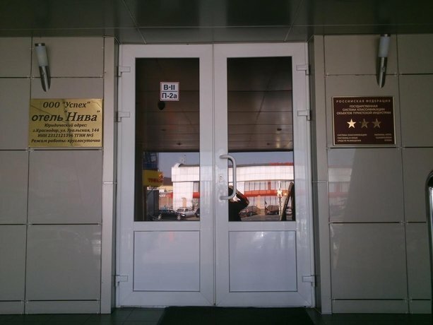 Гостиница «Нива» (Краснодар, ул. Уральская, 144) — трёхзвёздочный отель с круглосуточным обслуживанием. Предлагает номера (от 2000 до 3500 ₽/ночь) с кондиционером, Wi-Fi, телевизором, санузлом и мини-кухней (чайник, холодильник). В стоимость включён завтрак по меню.