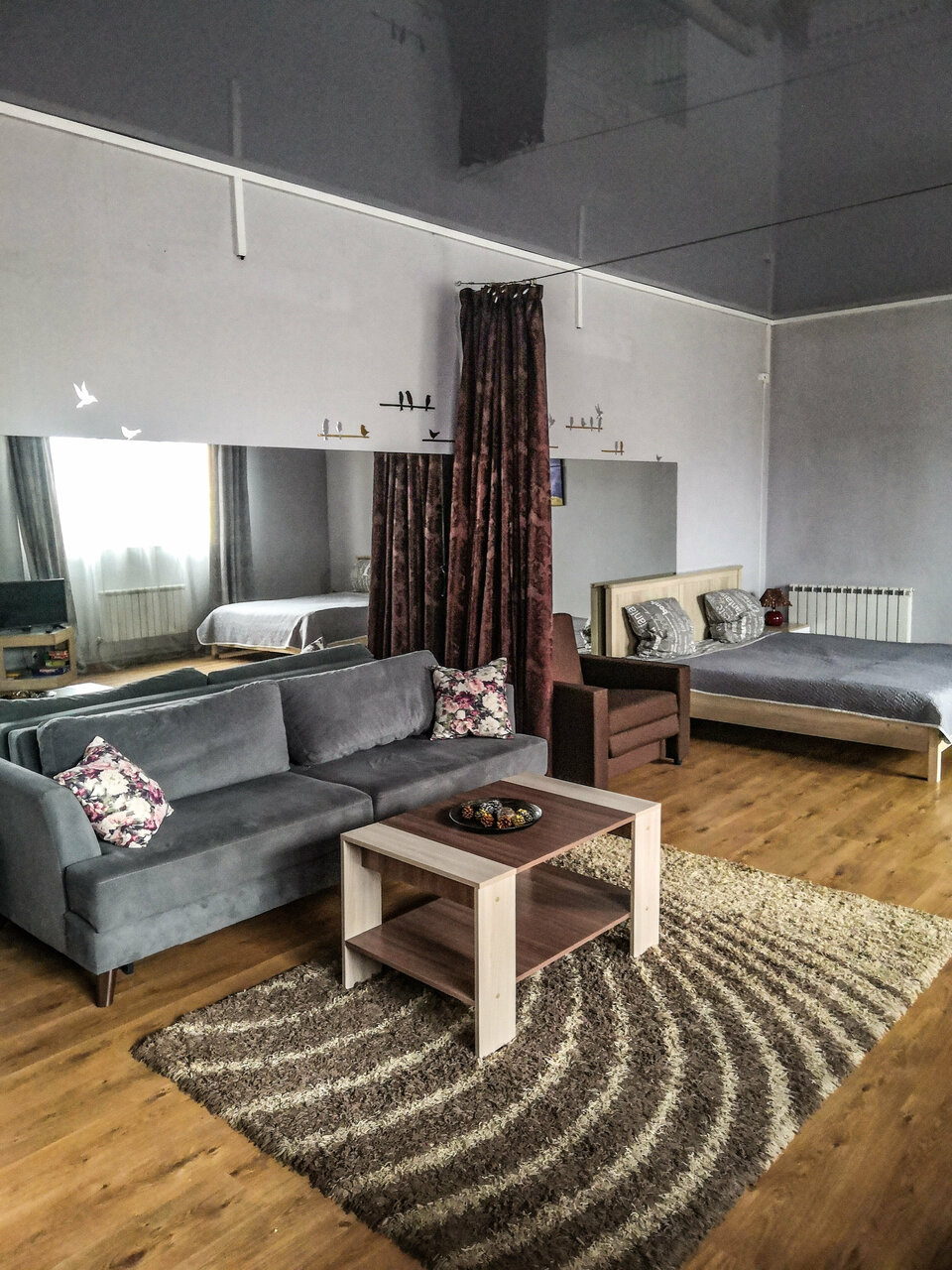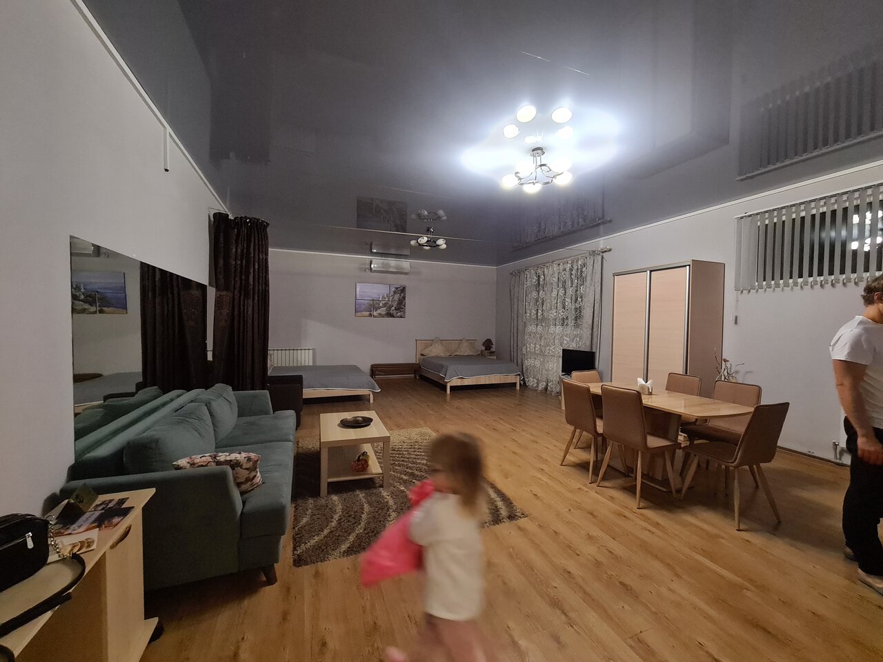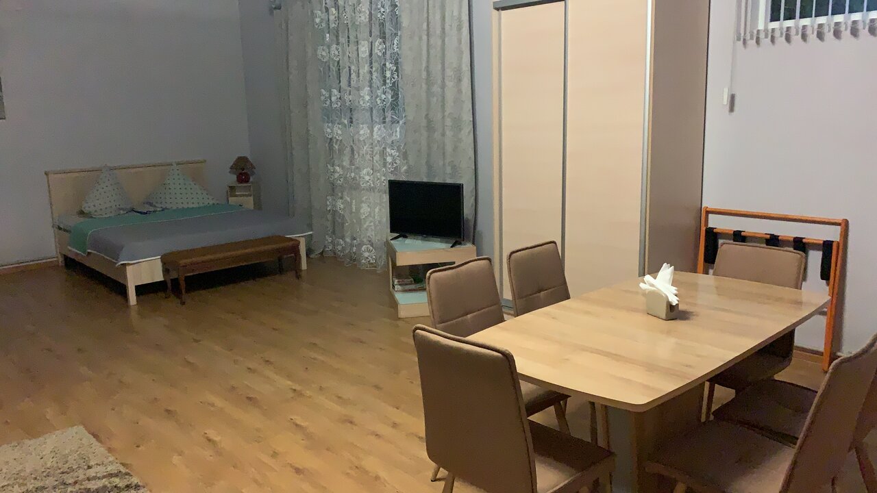 Делимся своим впечатлением после проведённой ночи в этом замечательном месте! Мы останавливались на ночь в номере — студии. Чисто,уютно,есть все все необходимое для комфортного проживания. Парковка прям под окном номера. Такие мелочи как утюг,гладильная доска,настолки и игрушки для детей,дополняют приятное впечатление. Очень вежливый парень встретил нас в 23:00,все показал и объяснил. Отдохнувшие и довольные продолжили поездку! Огромное спасибо!!!
