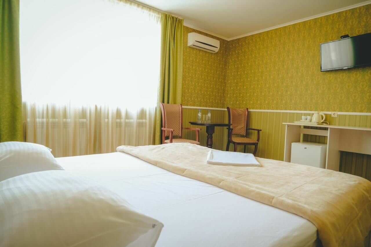 Большая двуспальная кроватьСанузел в номереЧайная станция Спутниковое TVWI-FI по всей территории отеляКондиционер ХолодильникГладильная комнатаПлощадь 12 кв.м