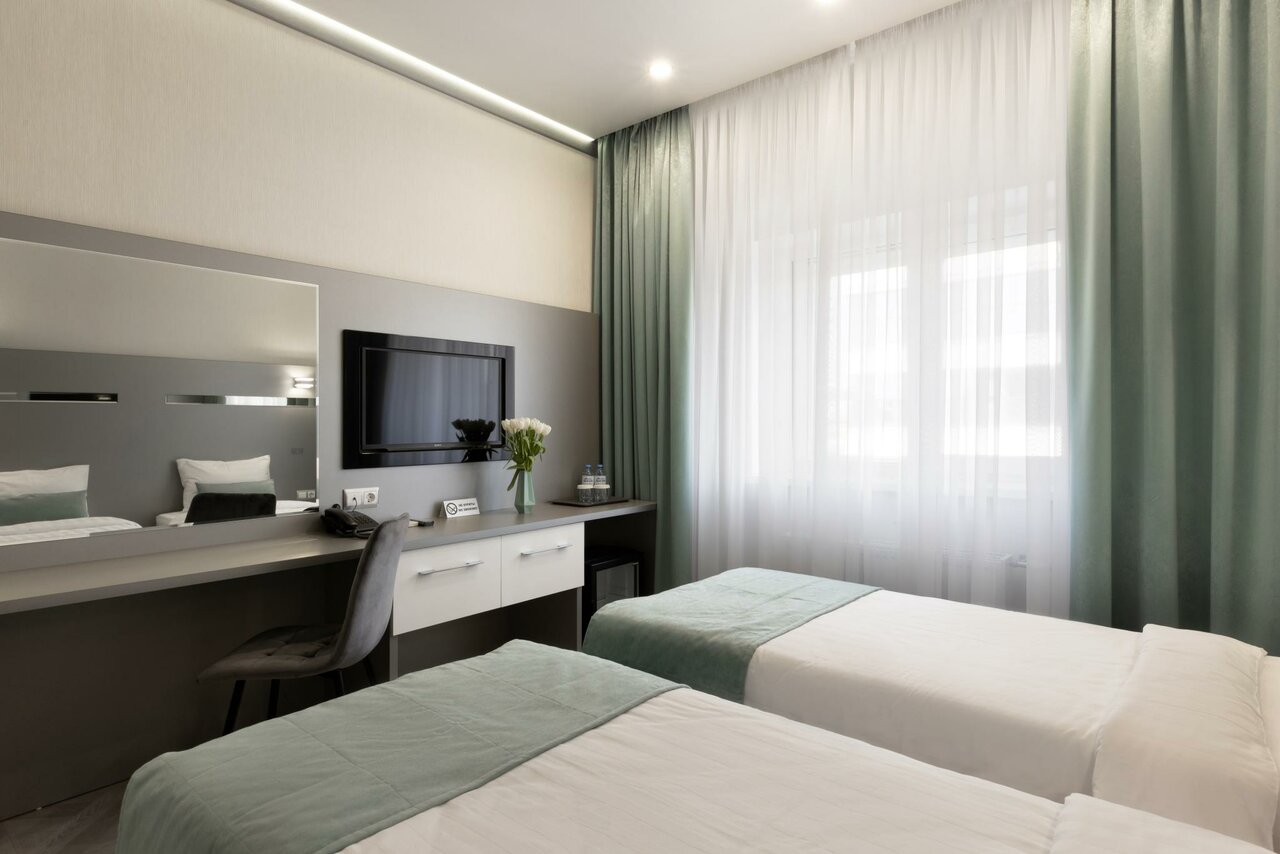 Один из лучших отелей по соотношению цена — качество. Удобное расположение в центре Краснодара, но на тихой улице. Новый ремонт, большая парковка с видеонаблюдением, отзывчивый персонал. Мы остались крайне довольны! Обязательно приедем ещё.