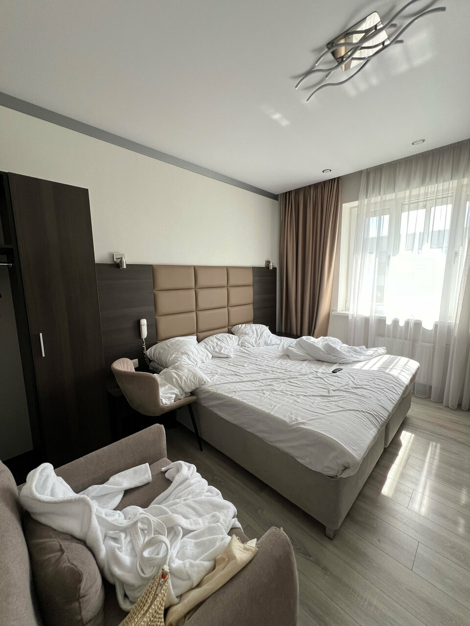 Замечательный отель! Очень чисто, уютно, соседей не слышно, вода в душевой уходит хорошо (часто в отелях слив забит). В номере есть халаты, тапочки, банные принадлежности, минибар. Единственный минус — было бы неплохо добавить пакетики кофе (были только пакетики чая) Шведский стол на завтраке замечательный. Начиная с каши, заканчивая десертами всё было пальчики оближешь. Шарлотка с яблоками выше всех похвал, насыщенна яблоками, тесто мягкое. В общем рекомендую этот отель.