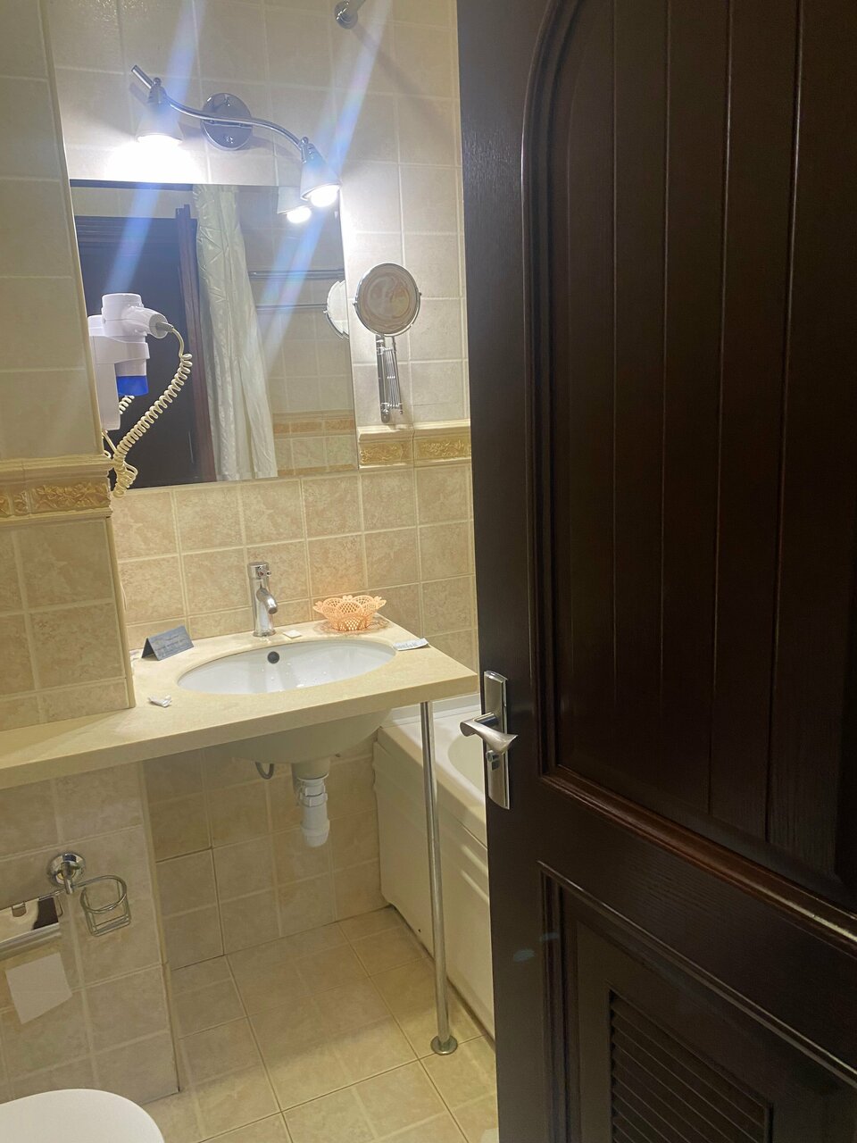 В отеле очень чисто. Персонал приветливый. В ванне нет работающих фенов, халатов, а также подставок для зубной щётки и пасты.