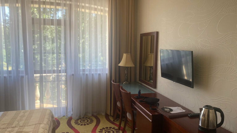 Тихое место, рядом парк, есть парковка. Номер Эконом Дабл тесноват в плане проходов вокруг кровати, но есть всё необходимое. Улучшенный Дабл значительно свободнее и есть столик для работы на ноутбуке.