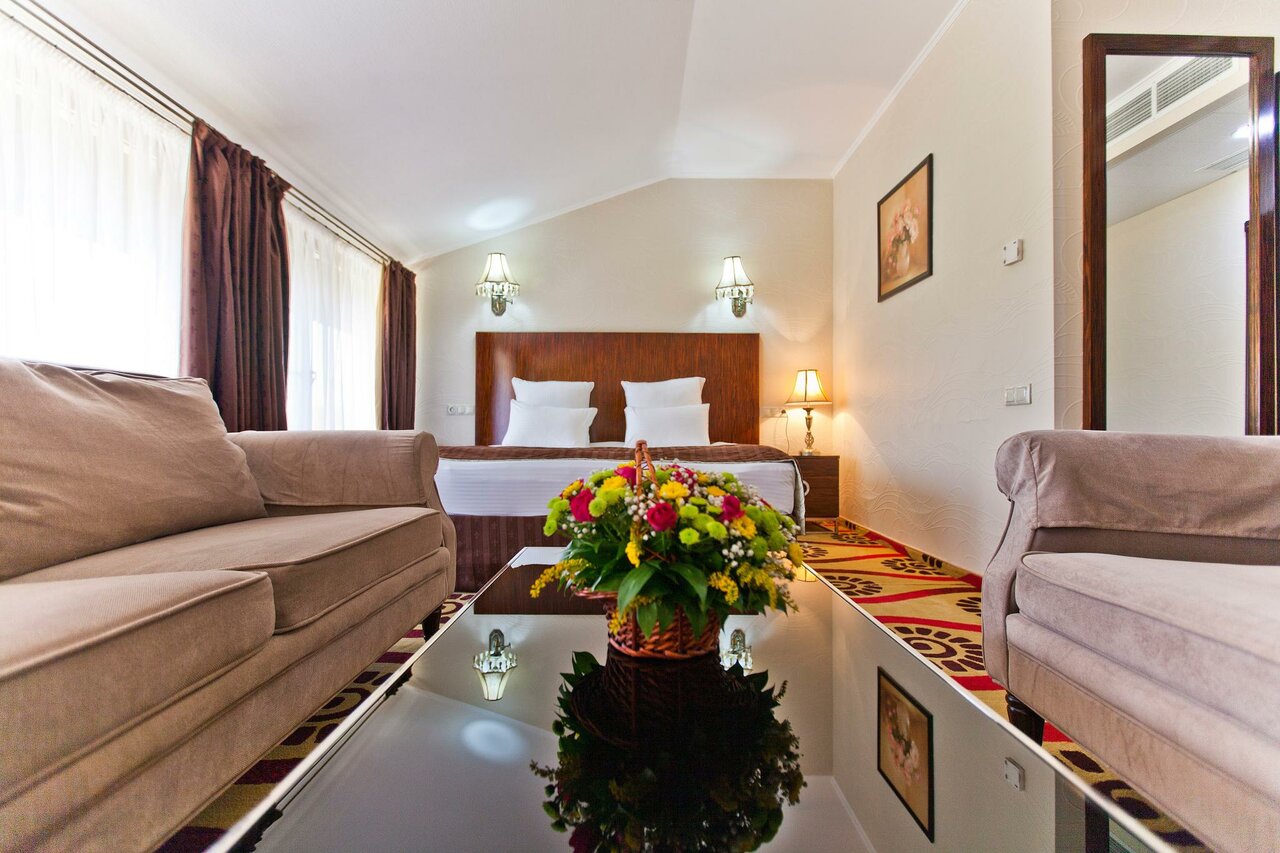 Площадь номера: 65 кв.мВ номере: Двуспальная кровать, прикроватные тумбочки, ЖК-телевизор, телефон, письменный стол, мини-бар, сейф.В ванной комнате: Ванная, раковина, унитаз, зеркало, комплект полотенец, одноразовые тапочки