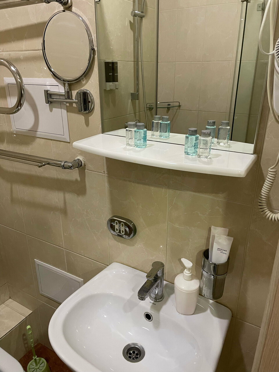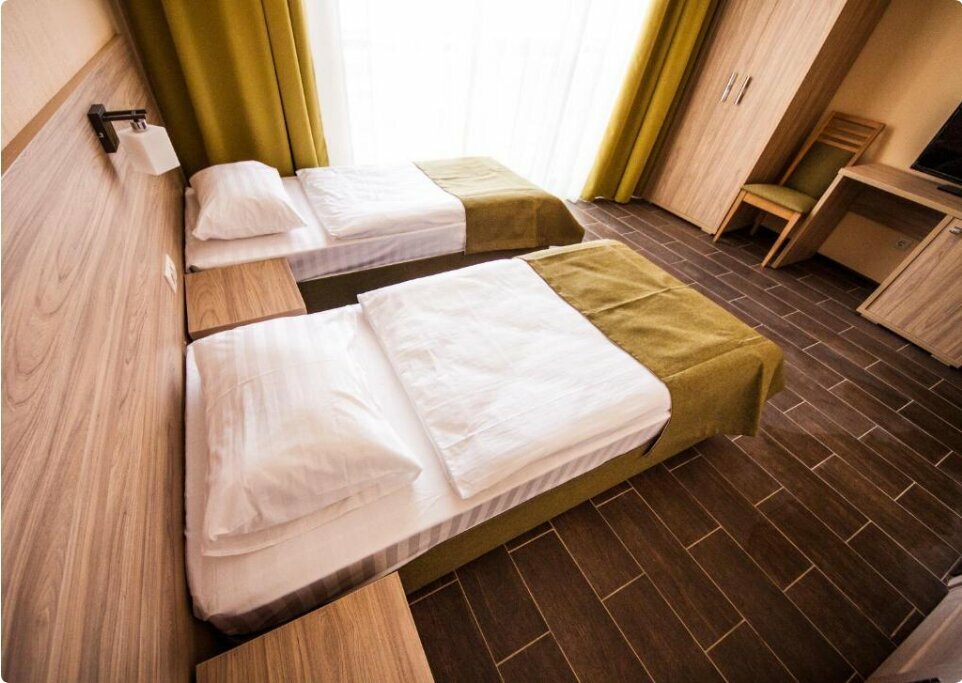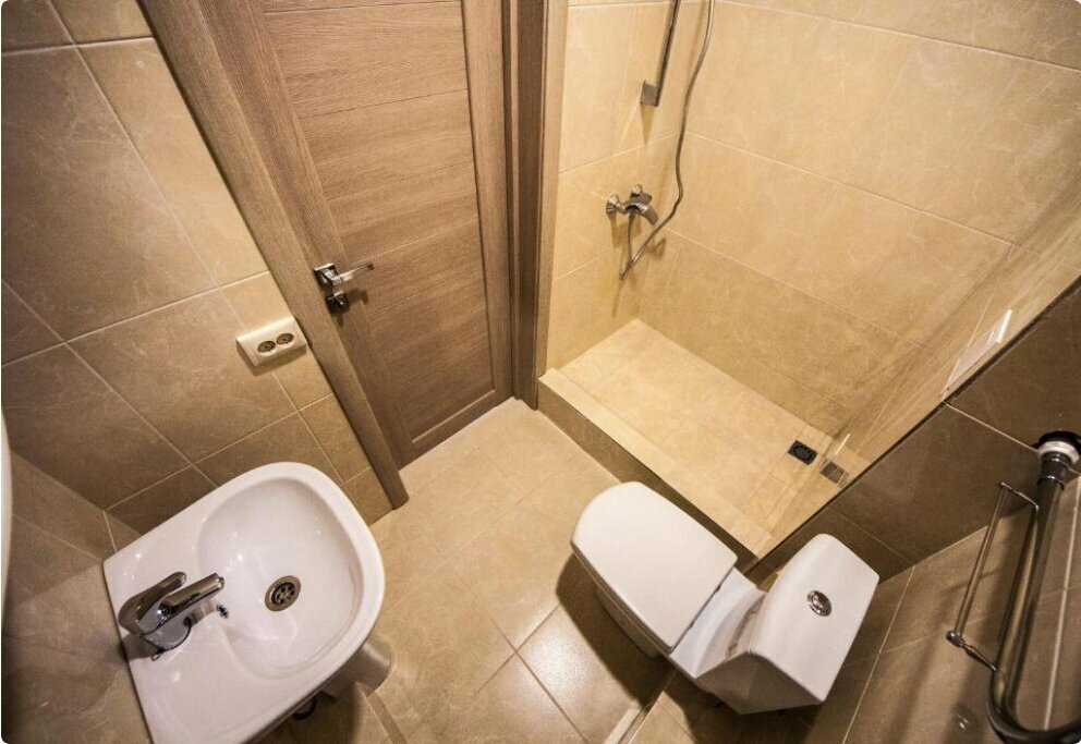 - Просторные номера с необходимыми принадлежностями (шампунь, гель).
