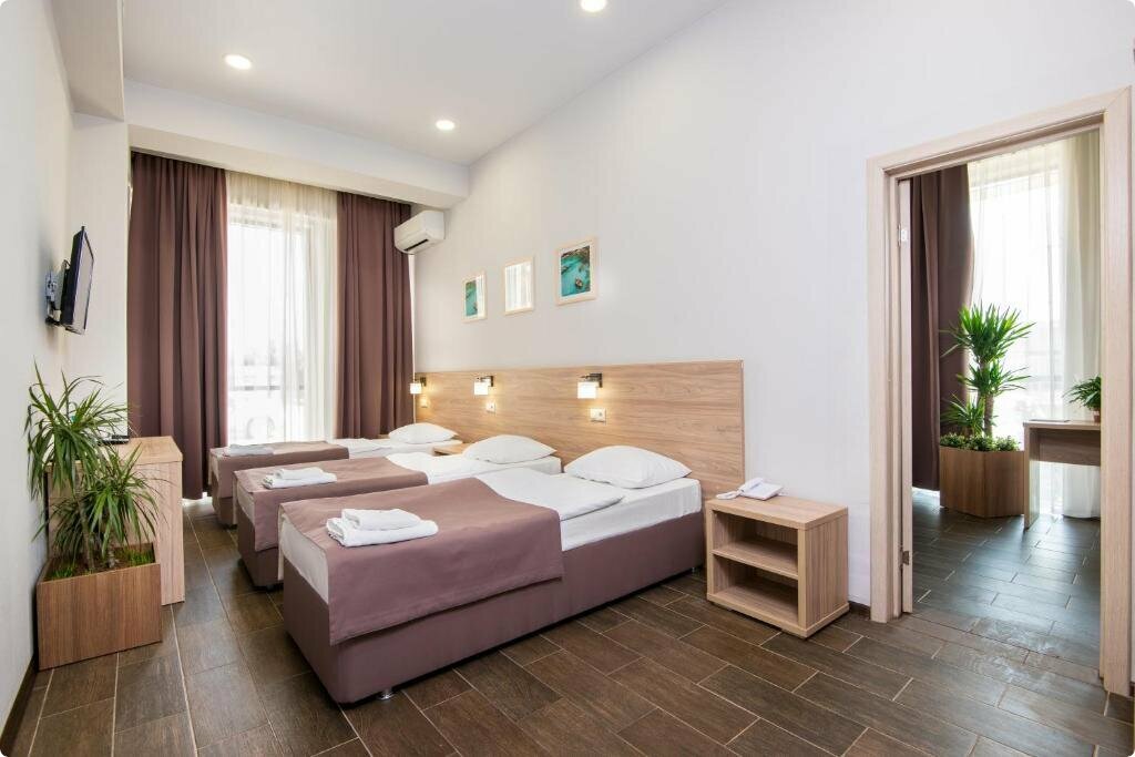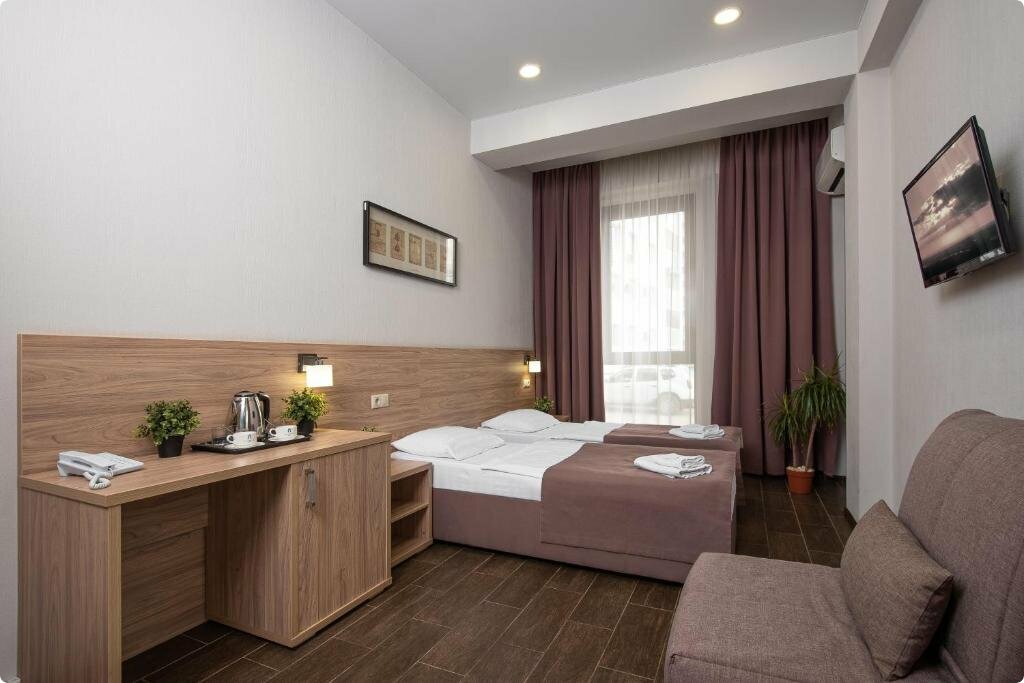 Переночевали да и ладно!Ночной администратор не два не полтора не пустил не пустил нашего спутника в его номер в 10 утра хотя номер до 12,(дневной шустрее и приветливее разрешил вернутся в номер), расположение отеля в целом не плохое, фотки вроде номеров норм,(на это и курились) но номер убраны на лиж бы было(стаканы вообще остались использованны после предыдущих постояльцев даже с содержимым, запах канализации адский вытяжки принудительной нет а это бы от части решало проблему(видимо в регионе где жаркий климат не знают что водяной затвор в трапе пересыхает и нужно либо трап с сухим затвором а лучше оба либо просто проливать водой), окна тоже не открываются. Разочарование!