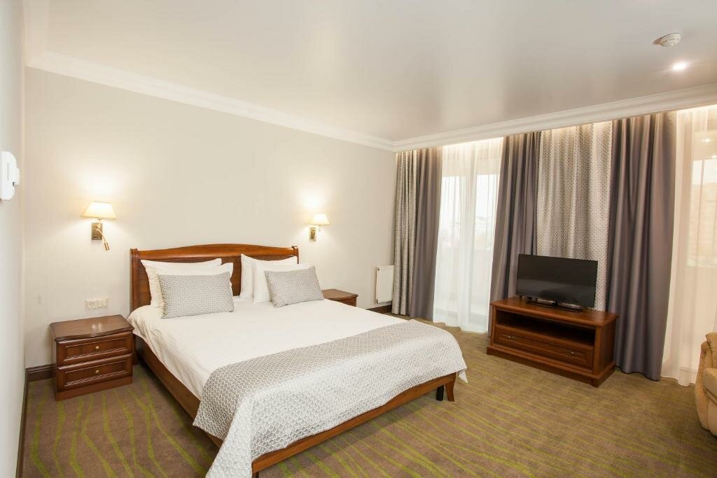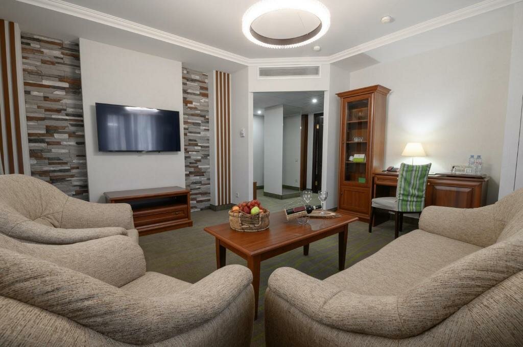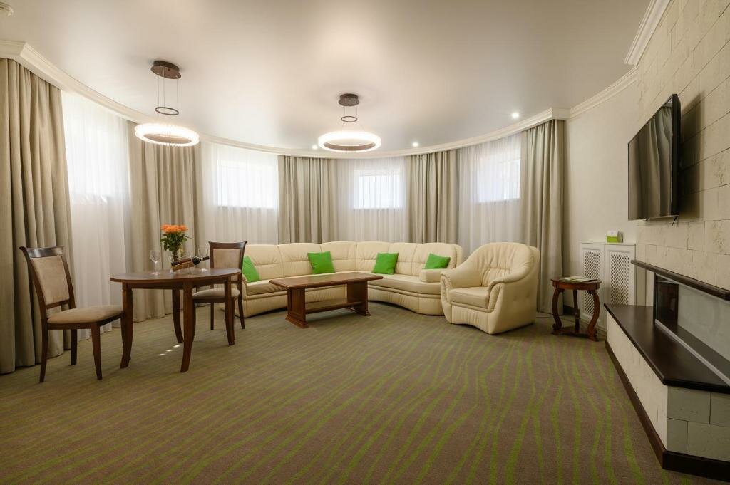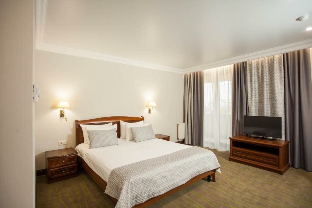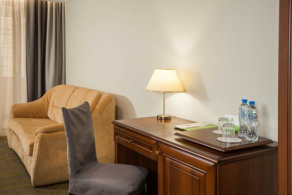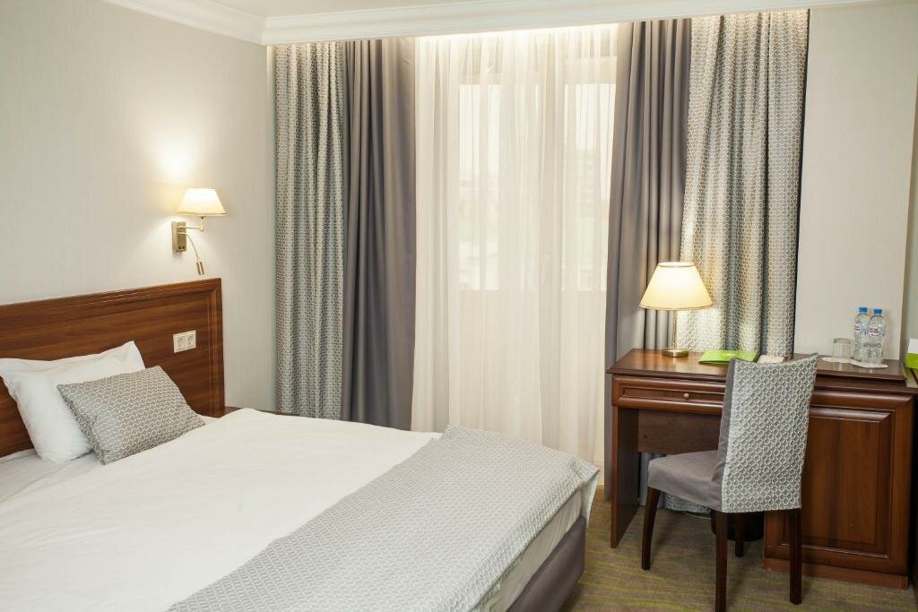 Удобства: — Бесплатные Wi-Fi, парковка, тренажёрный зал — Ресторан, бар, кафе, банкетный зал — Кондиционер, холодильник, сейф, фен в номерах — Бассейн и сауна (платно), конференц-зал — Проживание с животными (платно), детские кровати (бесплатно)