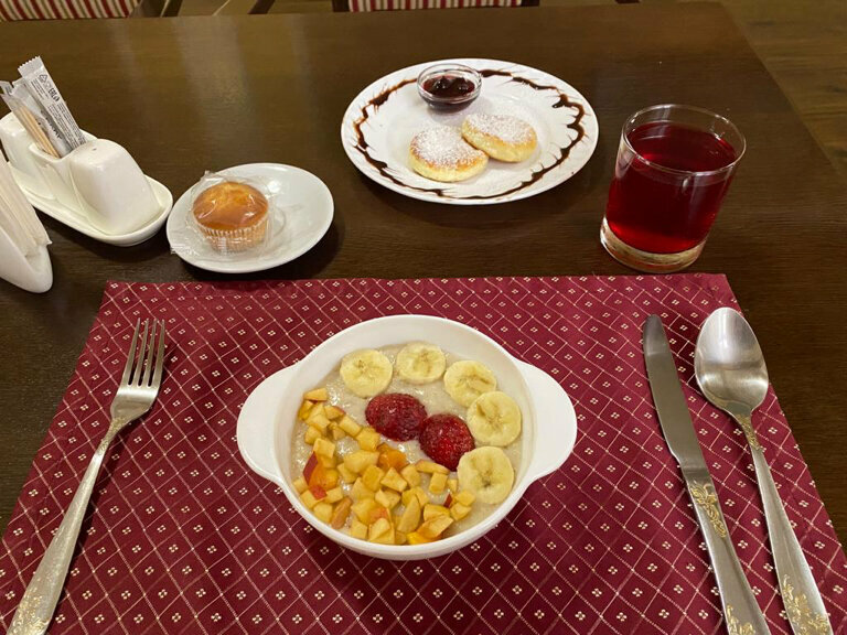 Ещё недавно была действительно хорошая гостиница. Но с приходом новых хозяев всё изменилось. В номере не стало воды, салфеток, посуды, мыла и зуб.щеток с па той. За тарелку со стаканом начали брать деньги.