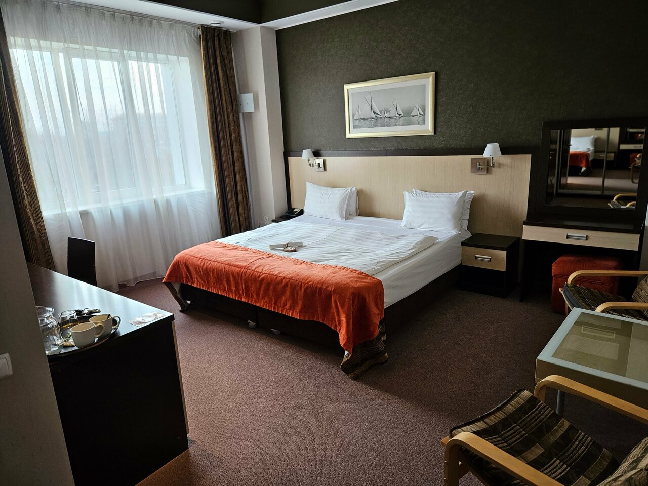 Хорошая гостиница, комфортные номера ( отличные кровати, все принадлежности, очень чисто), хороший ресторан, сауна с бассейном ( не требуется оплачивать дополнительно)
