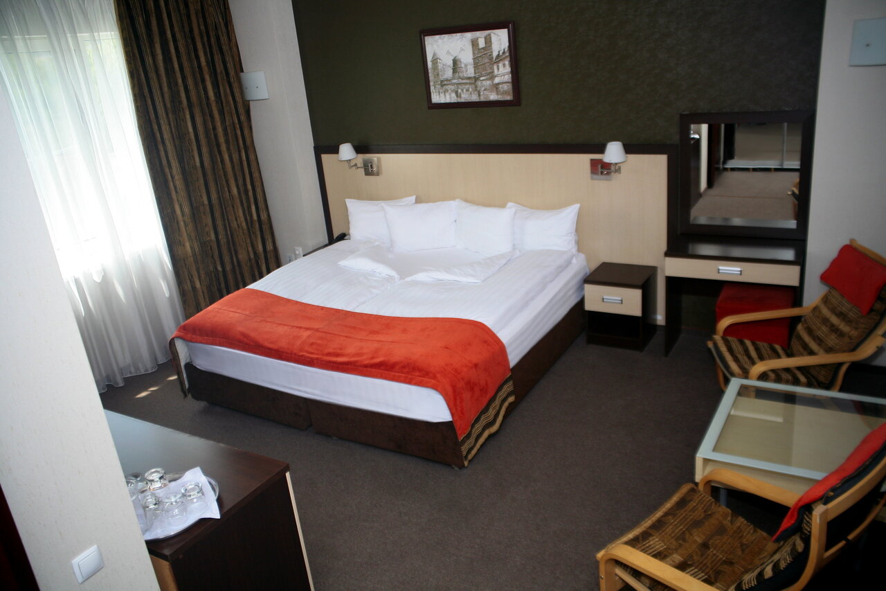 Отель очень понравился ,очень хорошо принимают, в номере чисто и удобно, всё есть. Бассейн и сауна входят в стоимость, что очень приятно. Останавливаемся только там.