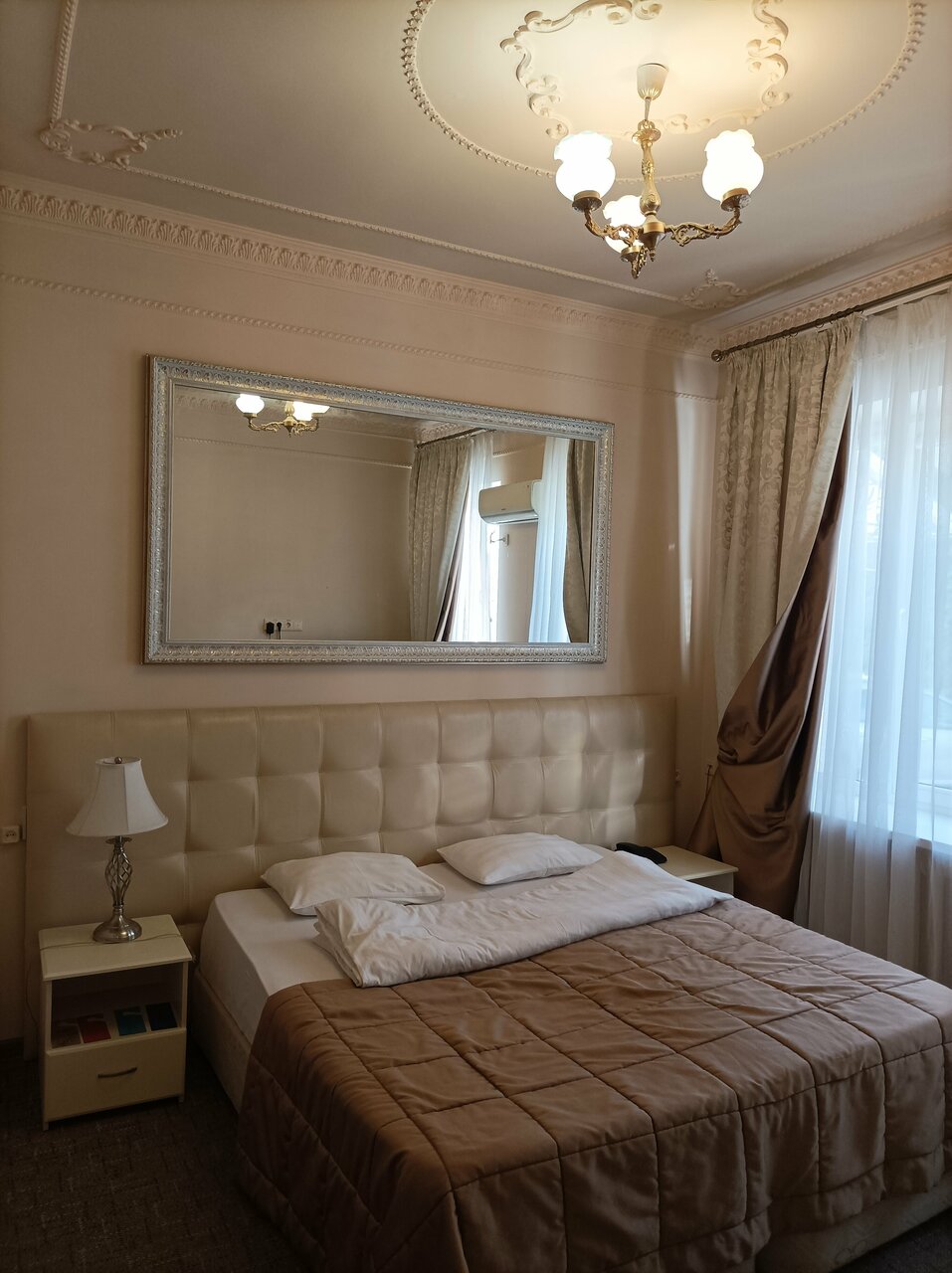 Тихий спокойный отель. Высокие потолки. Кровать огонь . Из минусов небыло горячей воды. Вежливый персонал. И минус нет банковского терминала.