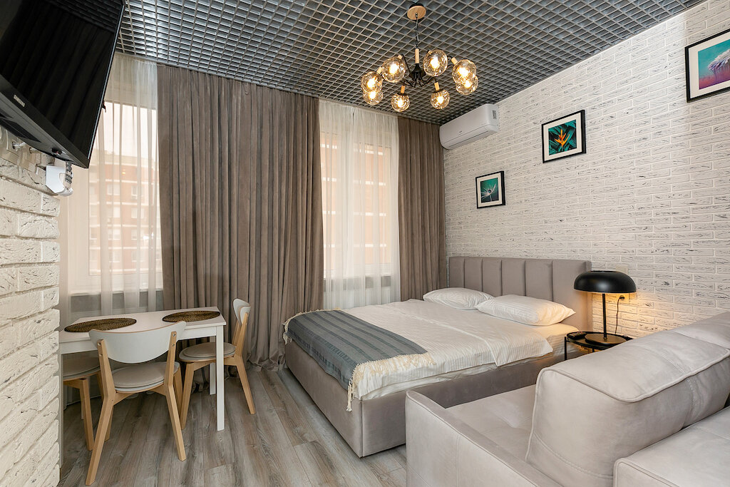 Шикарные апартаменты. Удобное расположение, приятная атмосфера, яндекс станция для настроения. Чисто, комфортно. Знакомые тоже выбирают отдых у них. Рядом парк победы.