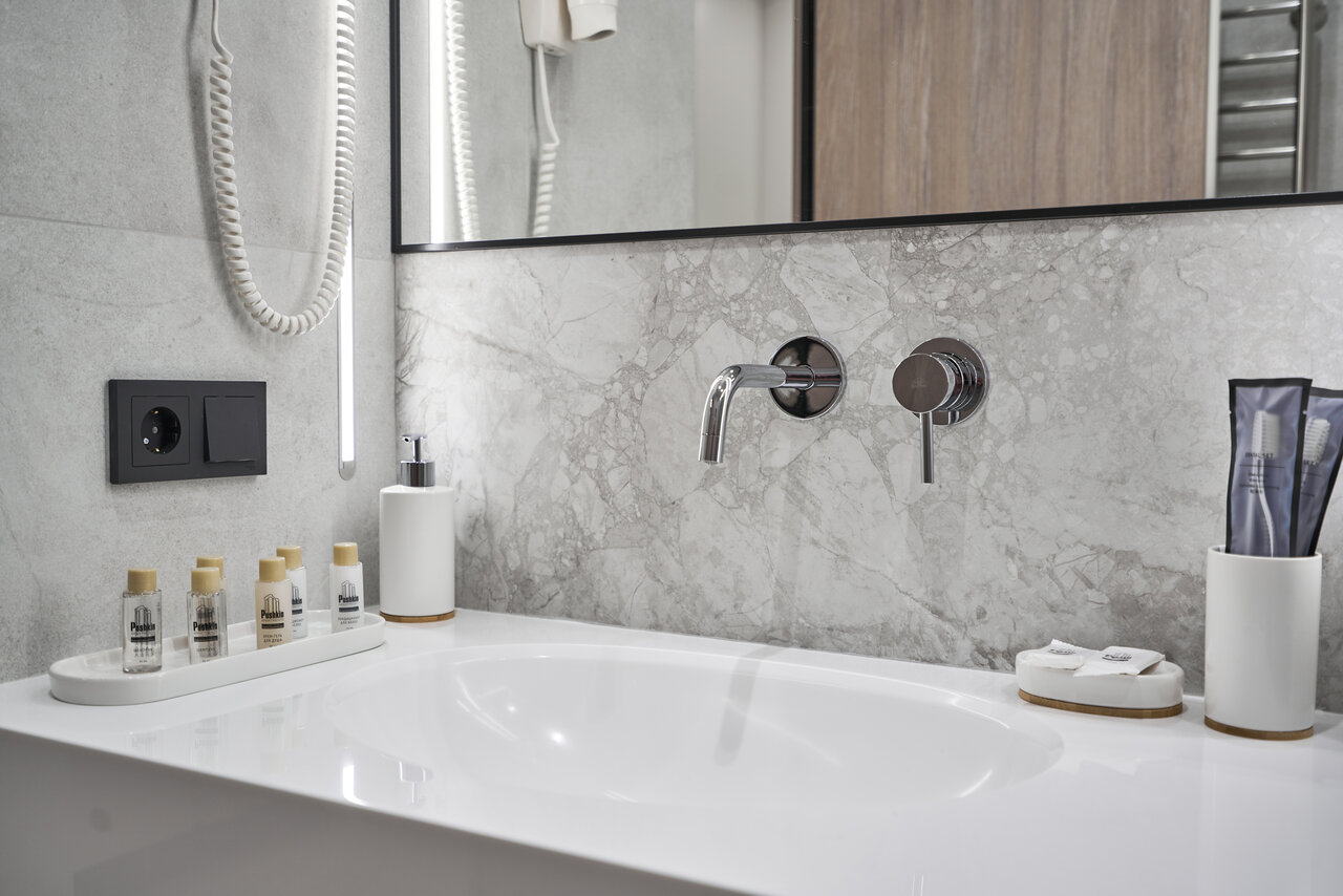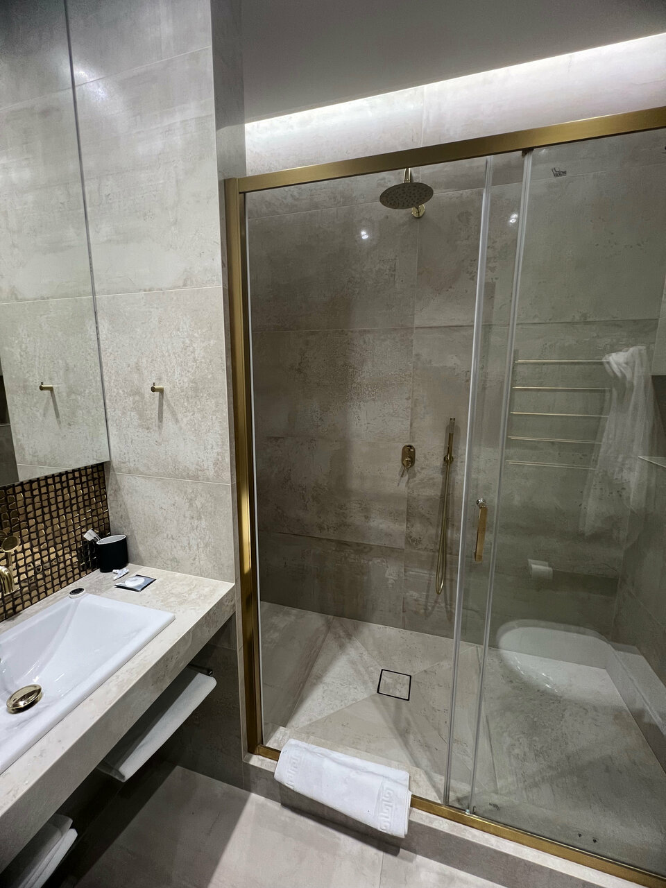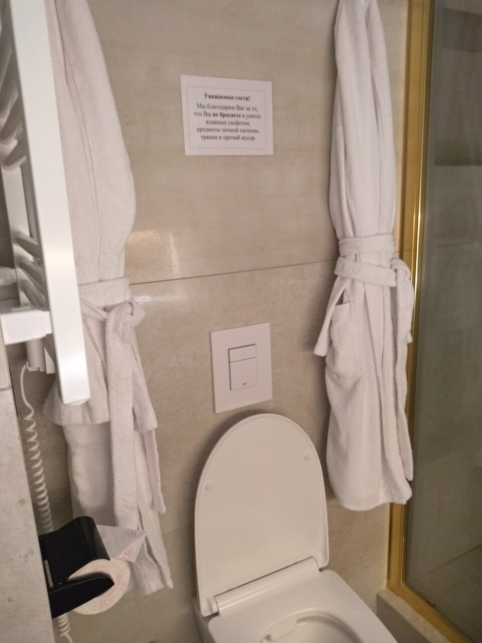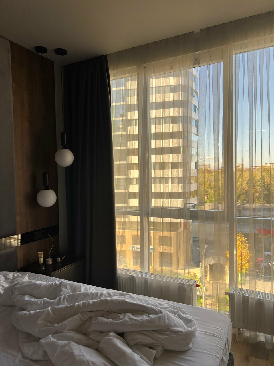 Очень приятный интерьер, видна работа с дизайнером. Оснащение номера тоже на высоте, особенно тест-драйв Алисы — продали её нам лучше, чем любые промокоды и акции. Расположение отеля также порадовало, все необходимое в относительной близости. Также хотелось бы отметить чистоту номера — во многих других отелях даже близко не так убрано. В номере есть капсульная кофе-машина с парой капсул к ней и две бутылки питьевой воды, что очень удобно на утро. В ванной есть бритвенный набор, шампунь, гель для душа и кондиционер для волос. Из минусов — неудобные подушки, которые не держат шею и небольшой казус с фасадным окном, который решили мы сами за 5 минут с помощью капли физической силы.