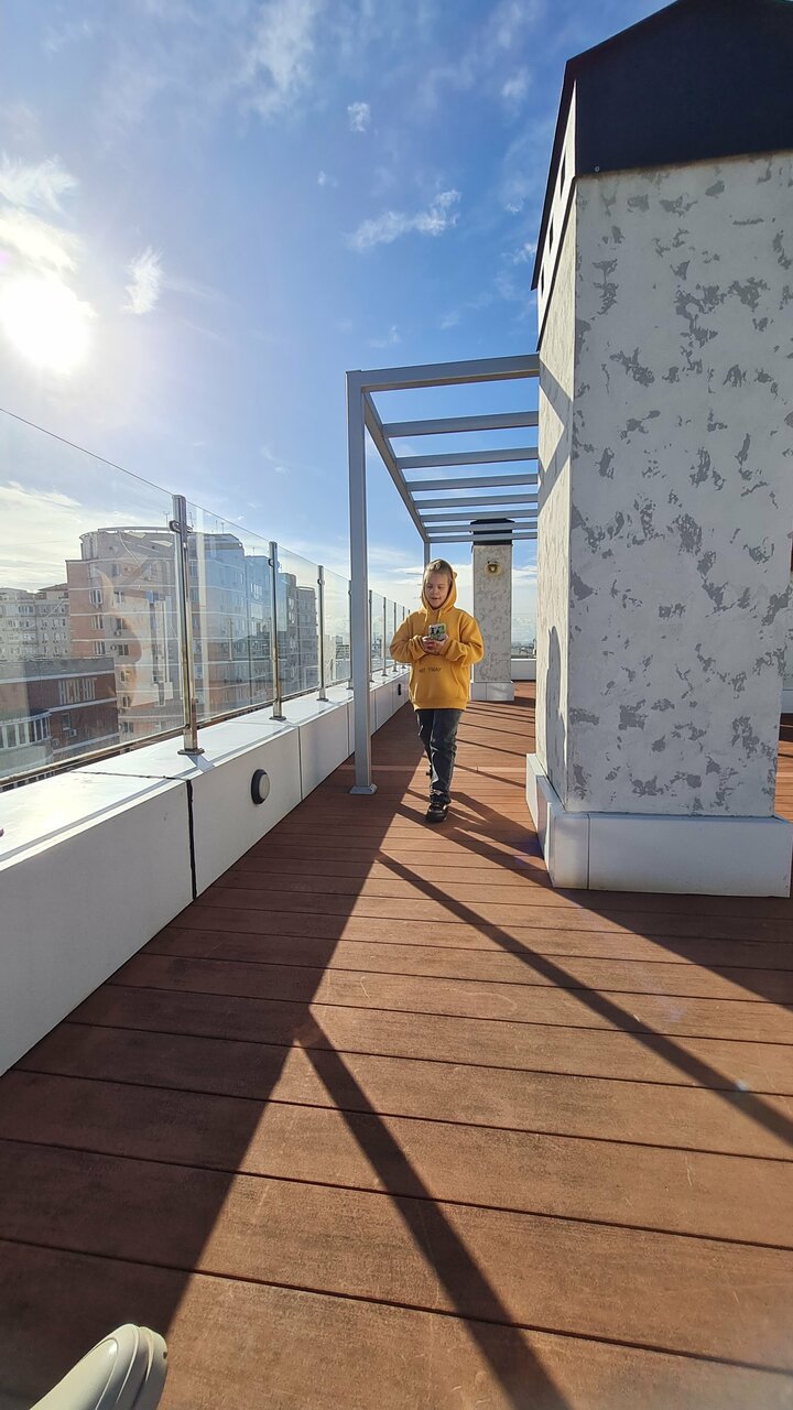 Хороший ремонт. Современный интерьер. Чисто, уютно. Администратор и работники доброжелательные. Есть выход на крышу, где расположена зона отдыха и детская комната.