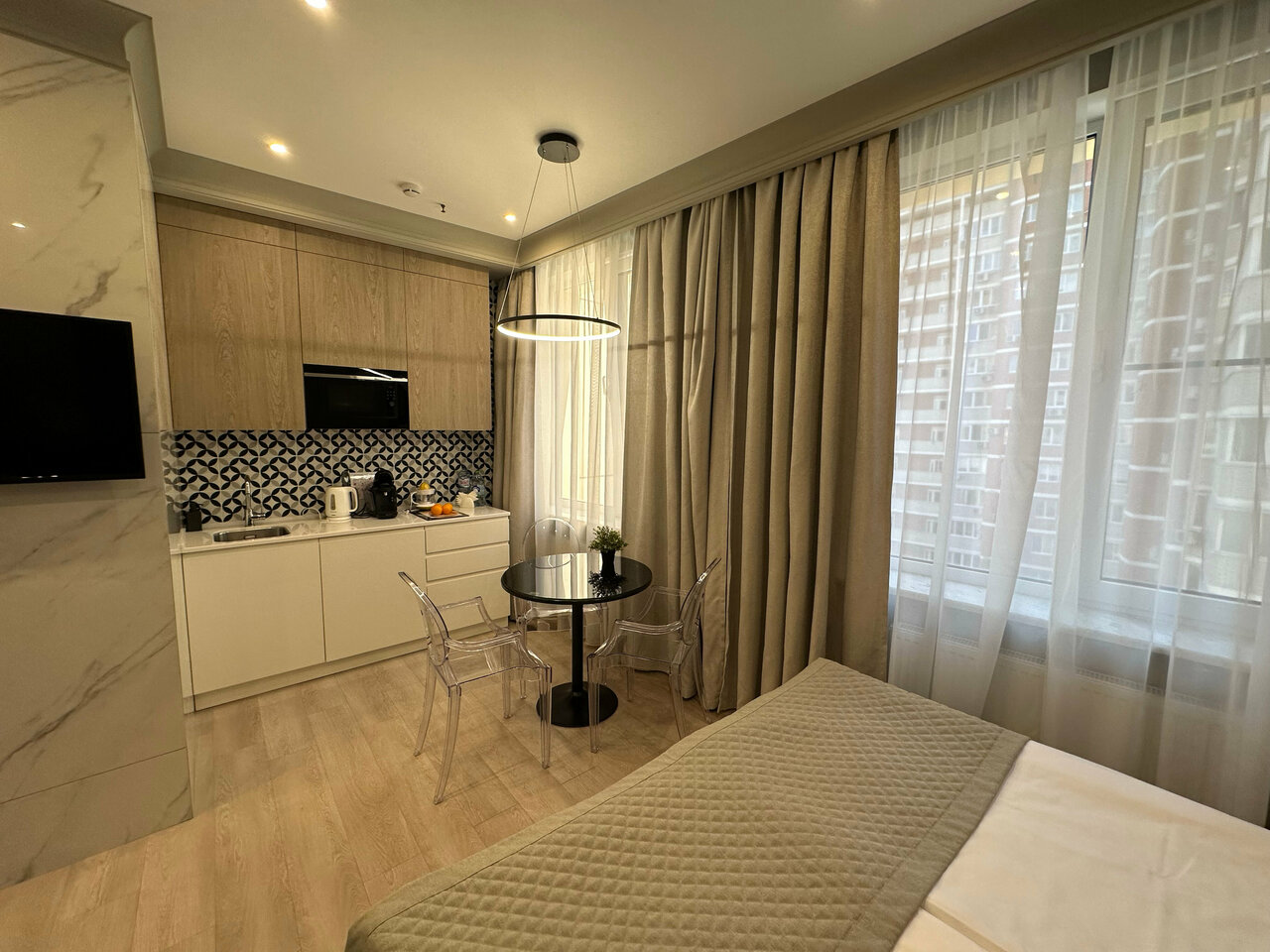 Апартаменты просто потрясающие. Мы жили в апартах gold, они были небольшие, но очень комфортные. Красивый ремонт, безупречная чистота. Было все необходимое для комфортного проживания, включая открывашку для вина и тряпок, если ты вдруг что-то пролил 🙂 а еще была отличная кофемашина! Решили, что в следующий раз, когда будем в Краснодаре, обязательно еще раз снимем апарты в Пушкине