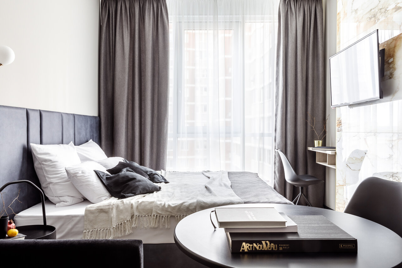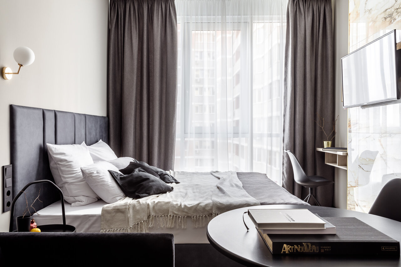В первую очередь, мне понравился сервис и приятный персонал! Так же много дополнительных сервисных штук (шампуни, гели, зубные шутки, кофе, вода, чай и тд). В номере чисто и очень классный интерьер! Для меня всё это было очень важно. Благодарю за прекрасные выходные в ваших апартаментах, обязательно ещё вернусь!