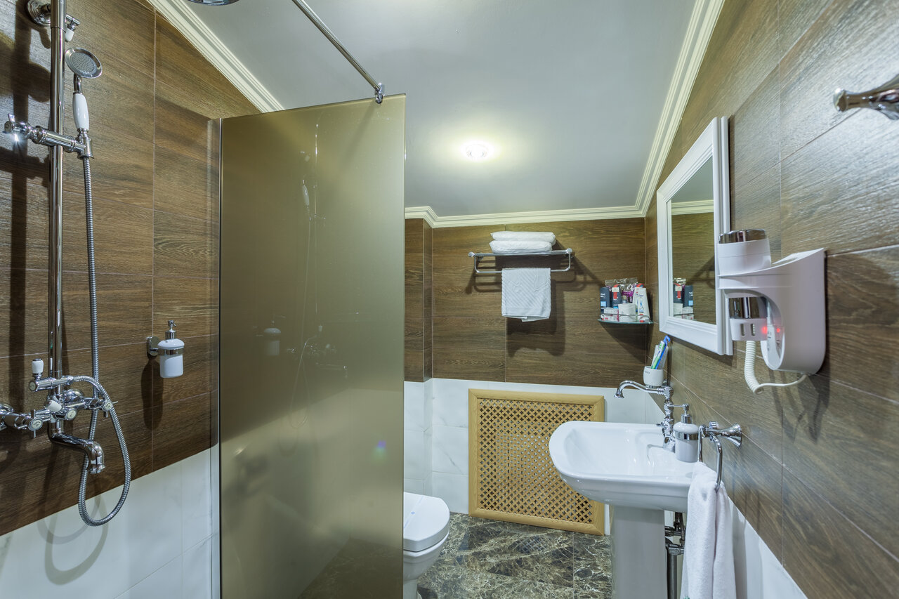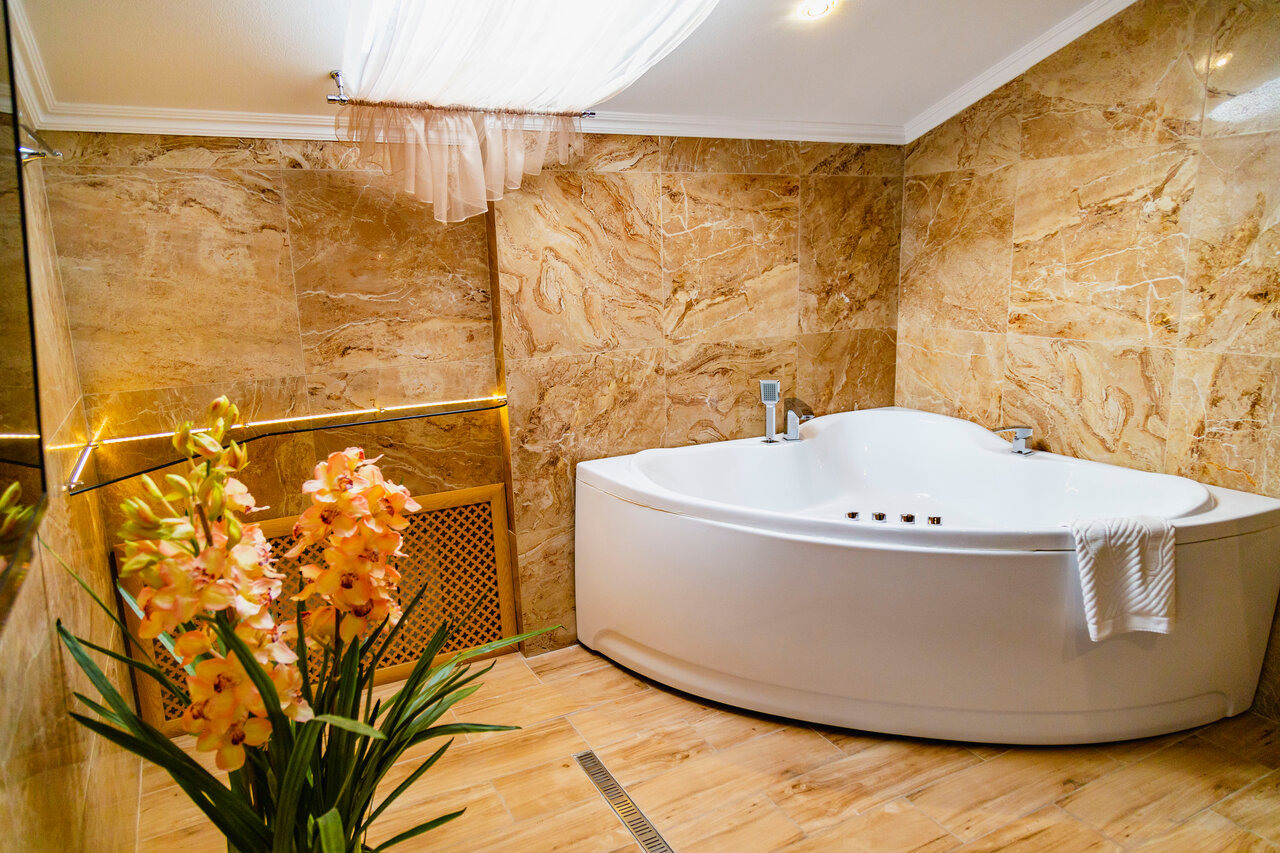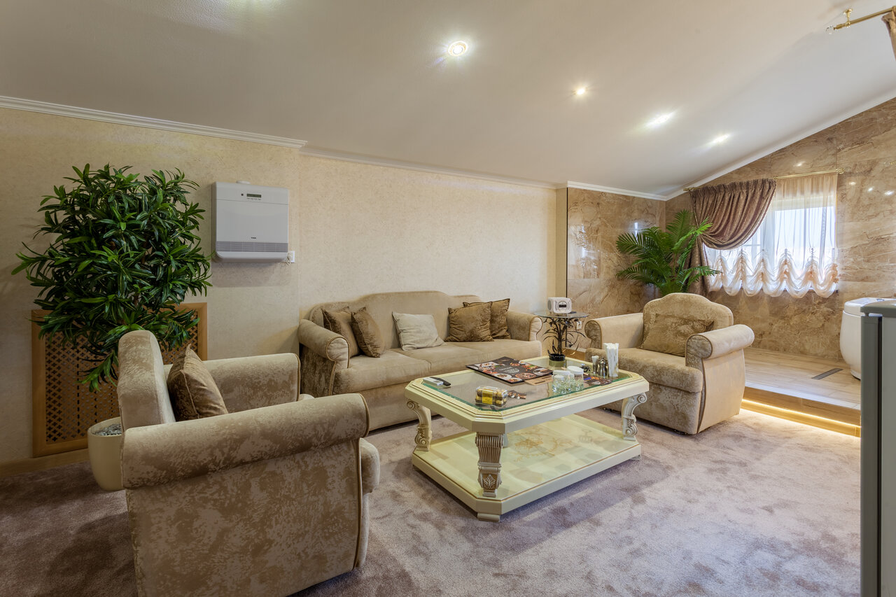 Удобства: — Номера с кондиционером, Wi-Fi, мини-баром, телевизором и звукоизоляцией. — Два бассейна (крытый и открытый с подогревом), SPA, сауна, хаммам, джакузи, массаж. — Ресторан, кафе, бар, диетические завтраки, питание «всё включено». — Бесплатная парковка, трансфер, конференц-зал, караоке, бильярд. — Услуги для гостей: химчистка, прачечная, сейф, камера хранения.