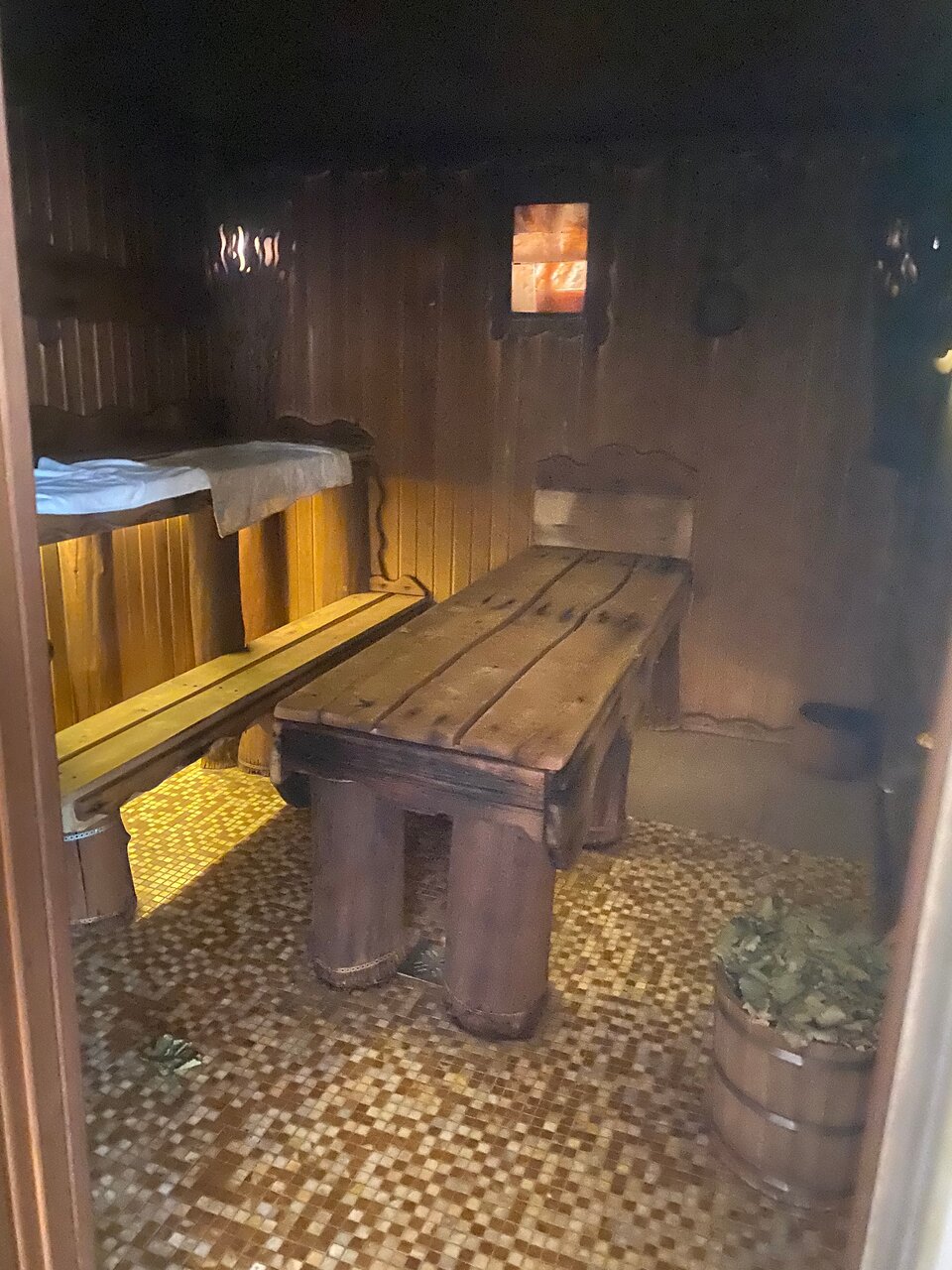 Все вроде ничего, но все принадлежности по отдельной стоимости. Не входят в счет, поминутная тарификация, что может не приятно удивить на выходе и греется поверхность в парилке. При этом супер крутая обстановка и интерьер