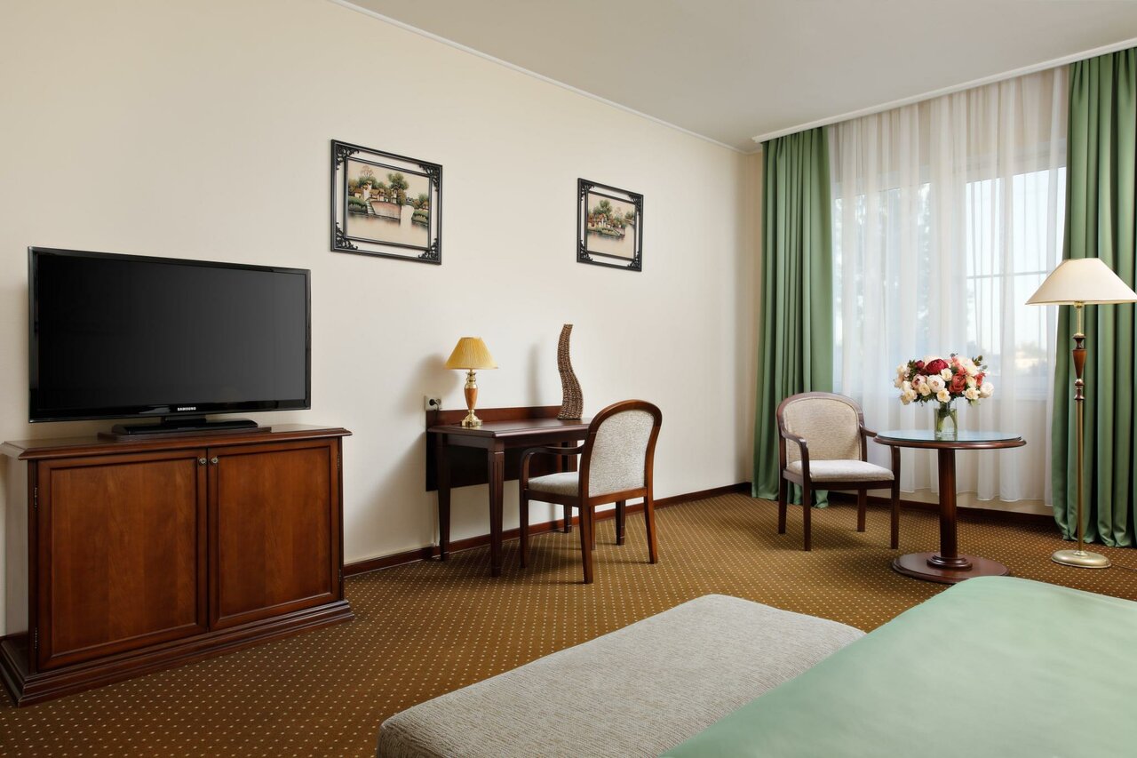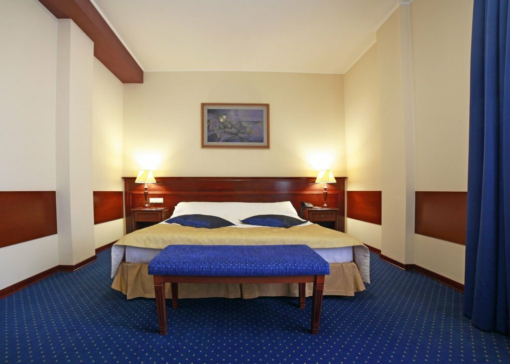 Номер просторный, есть тапочки, халат, банные принадлежности. Обстановка в стиле дорого-богато, не очень уютно. Завтрак хороший, подают и каши и запеканки и яйца в различных видах. До центра можно дойти пешком минут за 10-15.