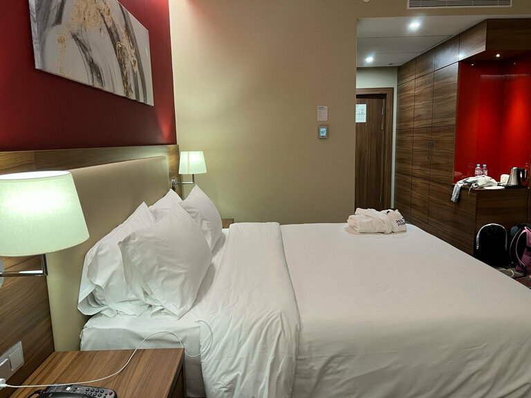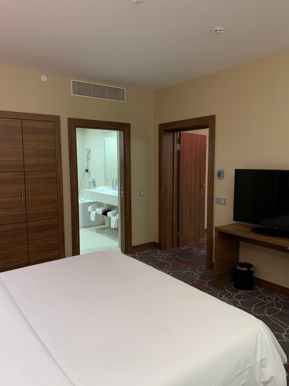 Доброго всем дня!Начну свой рассказ.В этой гостинице круто все ,начиная с зоны парковки .Очень чистый и крутой отель и входная территория, Номер был безупречно чистый,большая кровать с матрасом на котором хочется лежать вечно и не вставать,постельное белье белоснежное как первый снег,в номере все есть и чай и кофе и вода ,ванная комната очень большая есть где развернуться.Завтраки великолепны,также есть тренажерный за и хамам. Очень рекомендую к посещению этого отеля если оставаться в этом районе то только в нем,