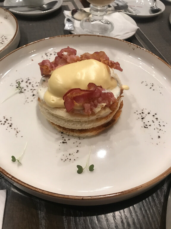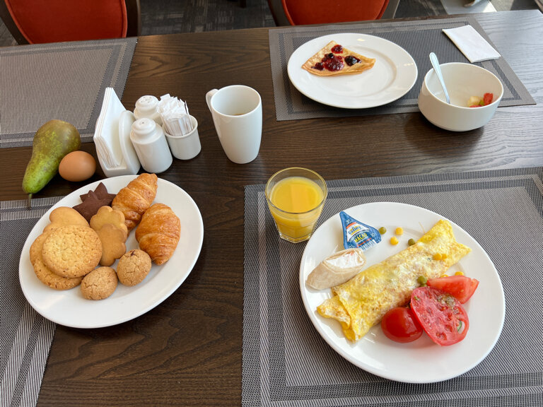 Мы были проездом в этом отеле, звонили два раза, предупреждали что едем, задерживаемся. Приехали, номер не готов, нам дали ключи, мы пришли в номер, там персонал стоит и собирает постель… И я извиняюсь, хочу в душ и спать, а она готовит номер… Обидно что не приготовили заранее… Завтрак тоже с косяками… Пришли позже открытия, но омлет ещё не готов, когда его приготовили, он весь черный как горелый, блины тоже горелые, прям с черными прожаренными местами… И нам показалось мало всего было на выбор.. я единственное оценила пирожные, вкусные, интересно где они покупают их.