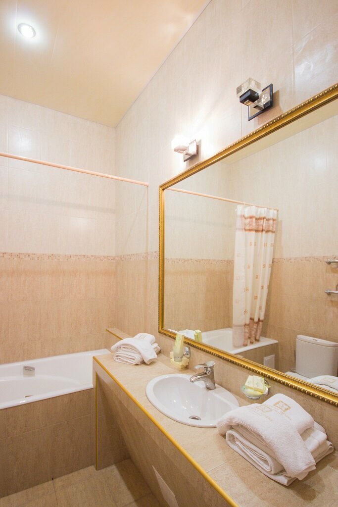 Отель отличный для своей цены в 2500 за сутки. У меня был номер категории ‘Бизнес’. Из минусов- на фото все видно,за это снимаю звезду. Душ рабочий, но не удобен в том плане, что его нельзя снять. Но за то есть бидэ, его работоспособность не проверяла. Выдают мыло, шампунь, зубной набор и воду. Это плюс. Полотенчик и постельное есть, вроде чистое. Просило дополнительное одеяло, пододеяльник был мокрый, но меня об этом предупредили. Спа зона- отличное место, однако очень скольский пол, упасть на раз два, особенно в одноразовых тапочках, которые выдают. Так же есть финская сауна. Ну тут ничего не могу сказать, просто не мое направление, и массаж. При выселение администратор удивил: вы выезжаете? Досвидания. Никаких вопросов, никаких предлодений и пожеланий, просто и безэмоционально забрала карточку. В целом отличный отель, мне в целом все понравилось.