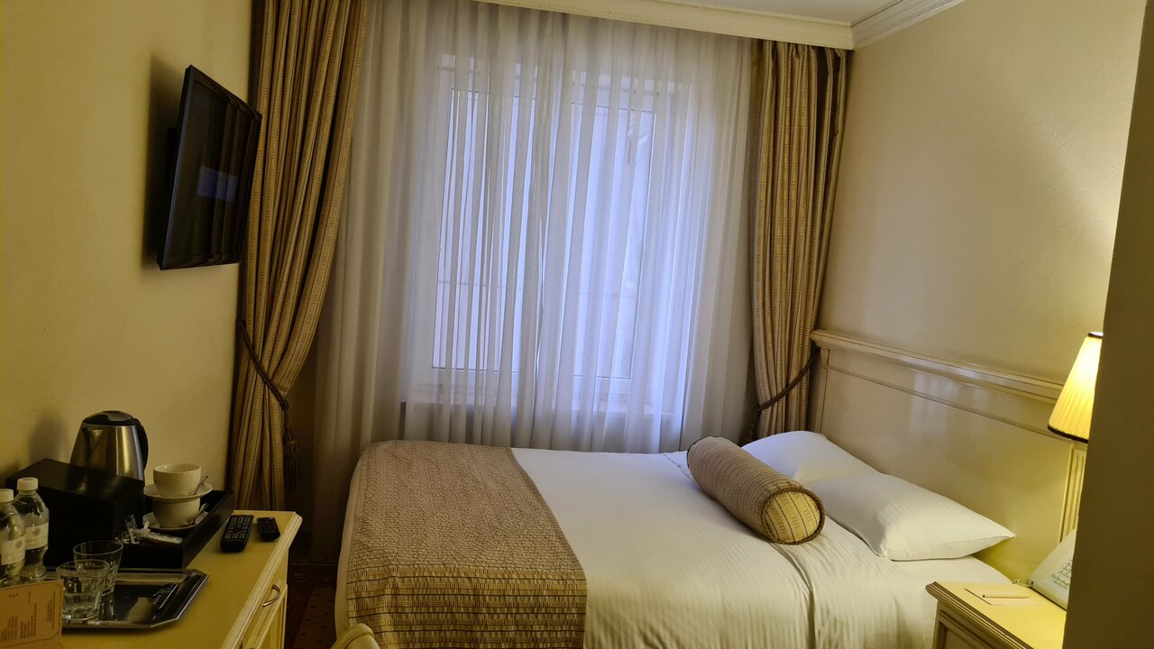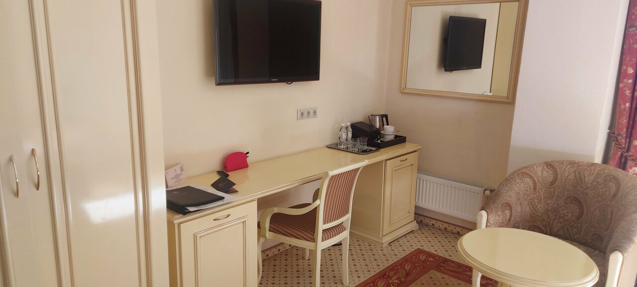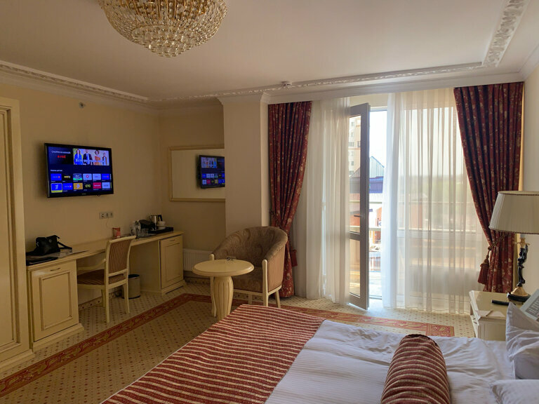 Прекрасный отель в классическом стиле!!! )))теплая приятная атмосфера ) Оправдывает свою цену и даже больше! Расположение удобное. Завтраки по системе шведский стол проходят в ресторане с панорамой на город , достойные и вкусные, выбор большой. Номера чистые , без посторонних запахов. Отзывчивый, вежливый и приветливый персонал. Соседи стали шуметь ночью, позвонила на ресепшен, проблему решили за 10 мин и извинились. Отдельно хочу отметить спа зону — 5 из 5 и никаких доплат за его посещение (входит в стоимость проживания ) на высоте !))) Малюсенький минус — недостаток парковочных мест, но буквально через дорогу имеется платная парковка для авто . Но отелем настолько остались довольны, что это не сказалось на общем впечатлении. Однозначно рекомендую !