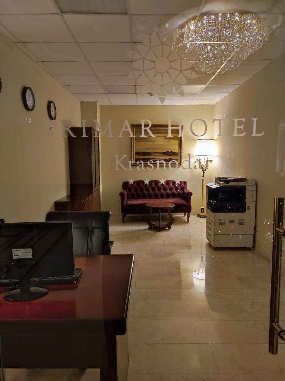 Римар это сказочный отель в центре Краснодара. Третий день живём в отеле не спускались потому что на втором и И третьем этажах есть великолепный Тренажерный зал с множеством приспособлений для сгона жира, укрепление мышц живота, ног, рук,разминания шейного и поясничного отдела позвоночника, очень вежливые и квалифицированные специалисты- консультанты!