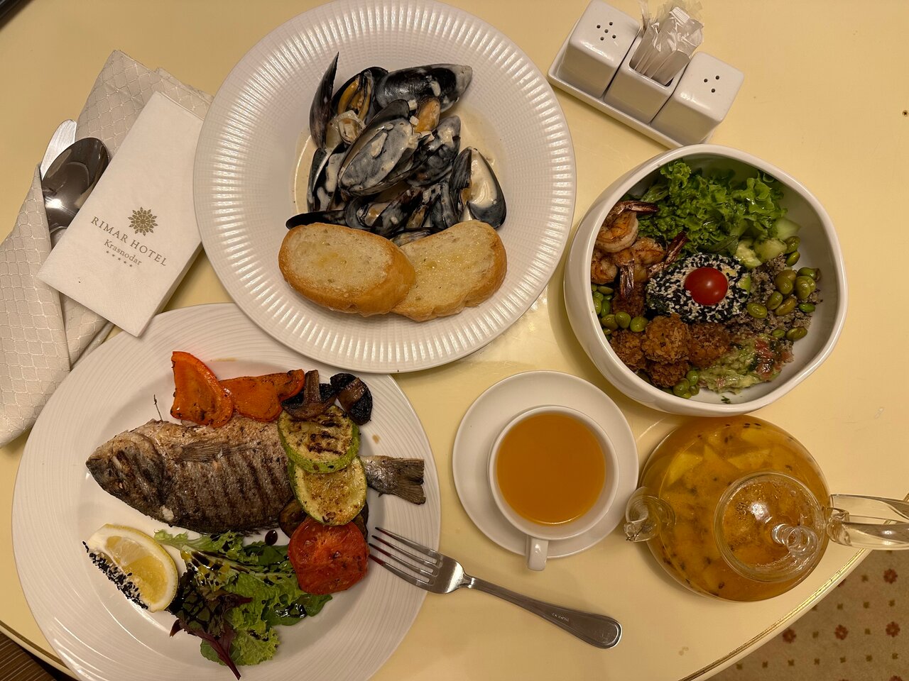 Всё отлично. Еда (завтрак) — выше всяких похвал: богатый ассортимент, всё очень вкусно. Персонал — вежливый, готов помочь при необходимости. Номер хороший, уборка отличная. Спа… Много народу. Есть посетители, не проживающие в отеле.