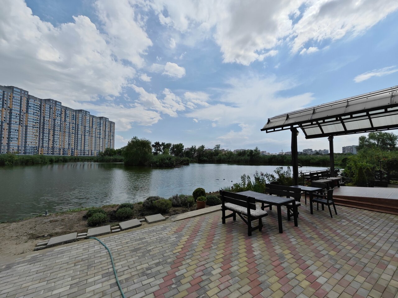 Нормально посидели, очень симпатично внутри, во дворике бы конечно хотелось более облагороженного вида, тем более вид на озеро.