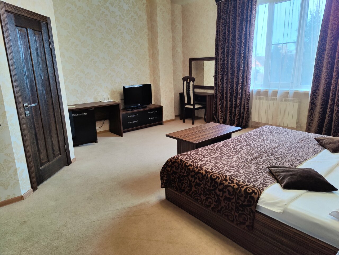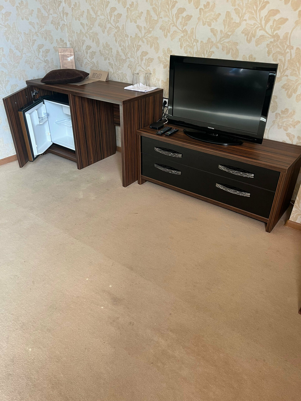 Номер просторный, но на этом все плюсы заканчиваются.На диване сломаны ламели. Копеечная часть мебели,но не меняют(перемотаны скотчем).Под диваном пустые бутылки валяются видимо давно. В санузле тусклый свет. Душевая кабина уставшая. Второй раз точно не остановлюсь в этом отеле.