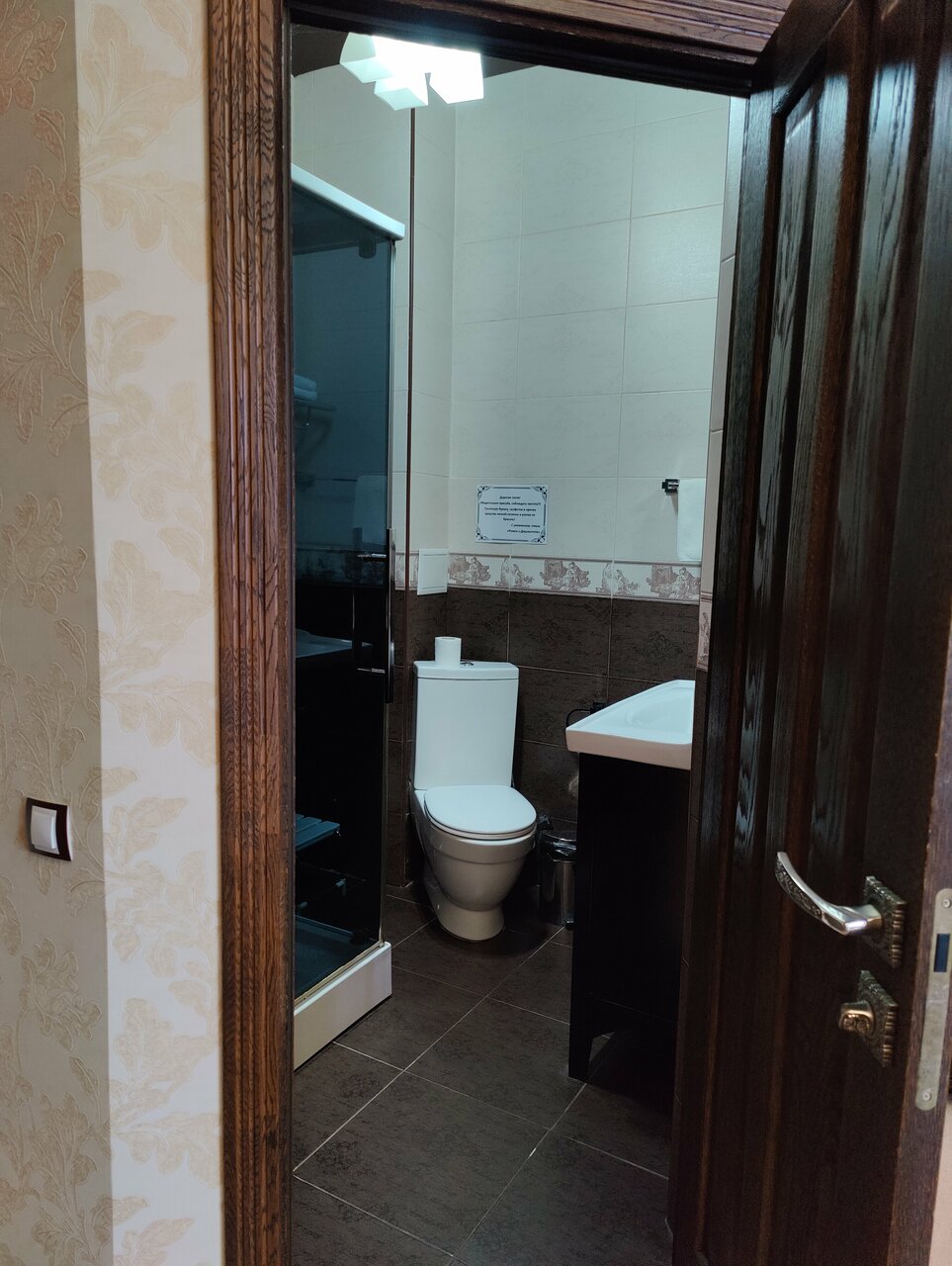 Всё было бы хорошо, если-бы не грязь… Пыль, ужасный запах в номере, палас вобщем не убирали. В ванной комнате унитазом нельзя было воспользоваться, !!! Раковина в волосах, пороги на стенах все в пыли, а халаты сняли с кого-то и повесили красиво… На завтрак нас пригласили в ресторан… Это скорее всего подпольная комната после бомбёжки, каждый сантиметр покрыт слоем пыли, может там проводили ремонт, но об этом нужно было предупредить. Стыдно, что к клиентам проявляют такое отношение. Интерерьер удивил, место тихое, персонал приветливый.