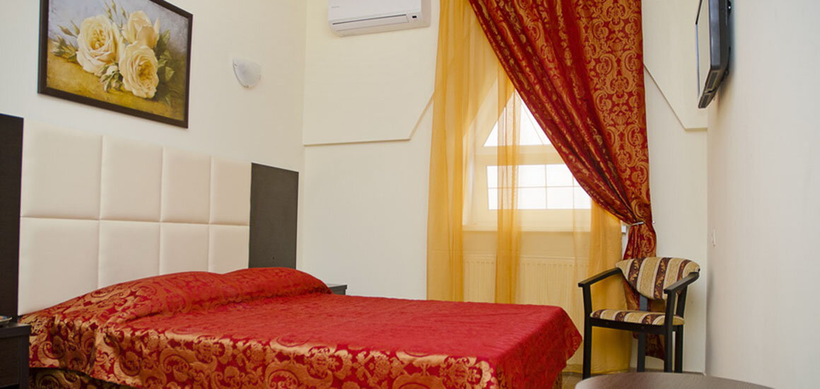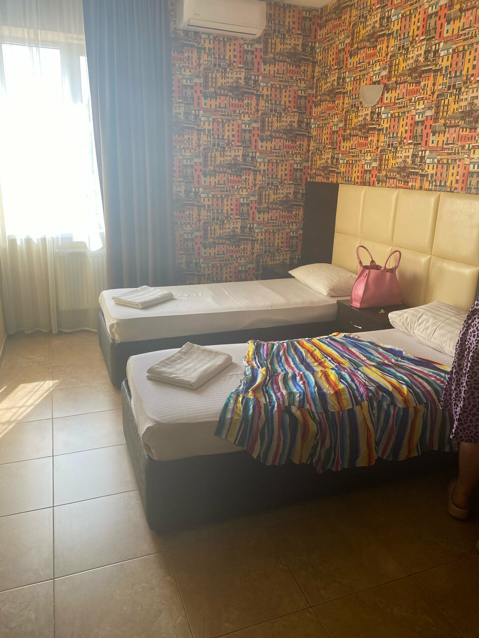 В номере чисто но, сильный запах канализации. Очень шумно, невозможно спать: поезда, сирены, постоянно слышно как сливается вода по канализационным трубам. Администратор посоветовала заказать покушать в номер из кафе находящегося во дворе. Заказали шашлык свиные рёбрышки и мякоть. Это не ребра а кости с мясом. В номере нет стола со стульями. Покушать можно только на кровати или на корточках перед тумбочкой. Одним словом — не советую это место для отдыха.