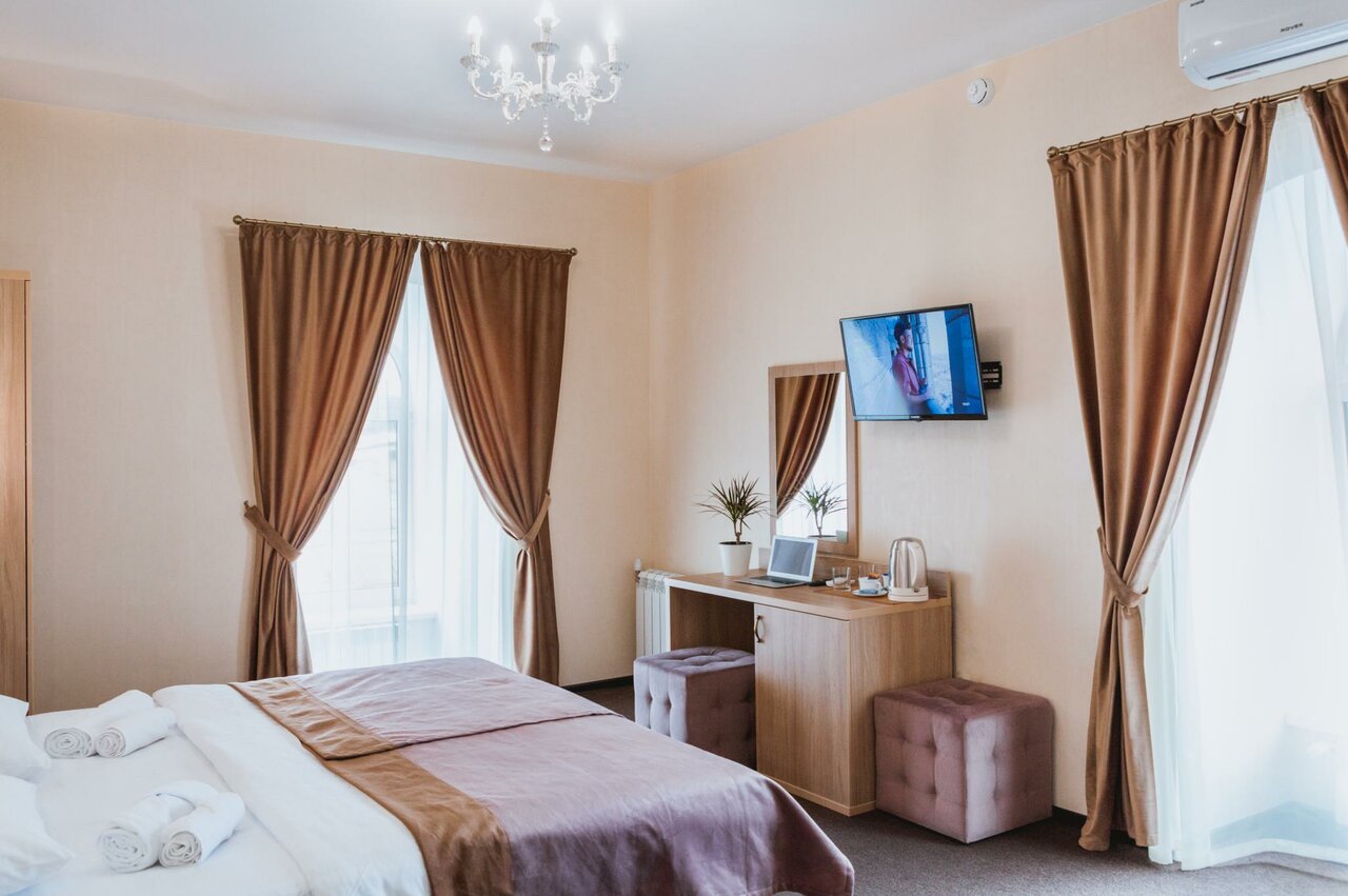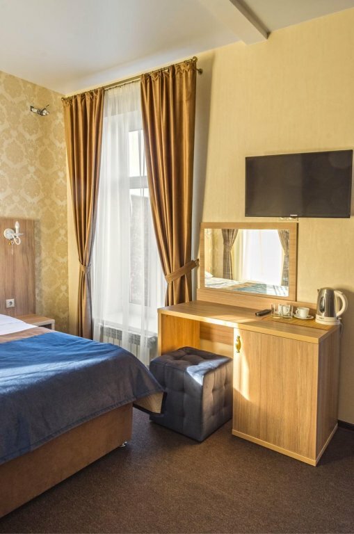 Мне очень понравился отель. На ресепшене оформили быстро, администратор приятная общительная женщина. В номере чистенько, в наличии холодильник, чайник, кондиционер, телевизор ,фен, мыло, шампунь гель, тапочки. В коридоре стоит кулер с водой. В шаговой доступности Свято-Екатерининский собор, сенной рынок, Галерея, мост поцелуев, Триумфальная арка, не очень далеко парк Галицкого. Очень довольна, что выбрала именно этот отель!