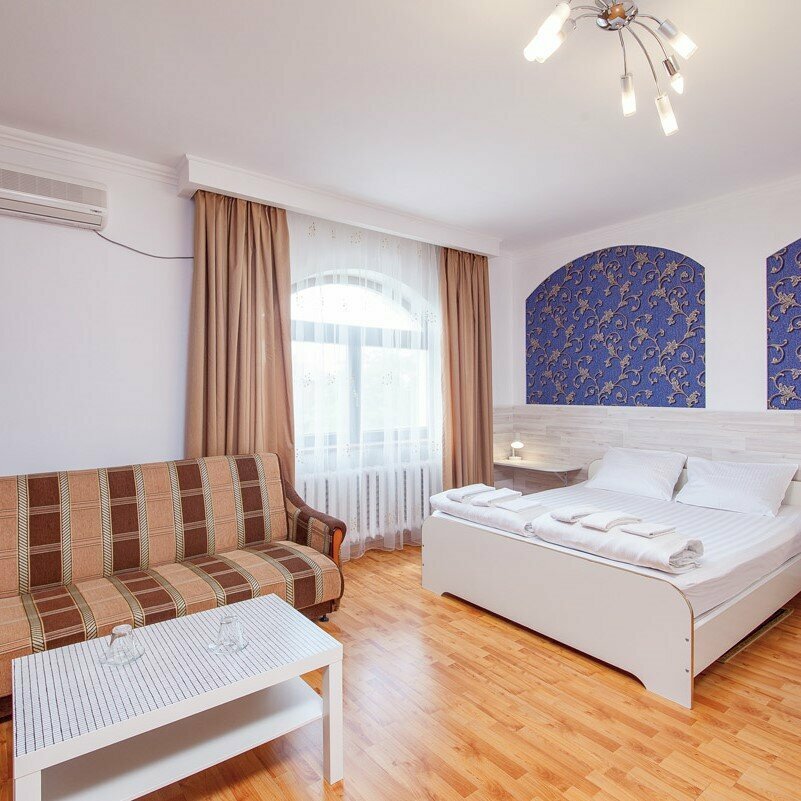 Очень чисто и уютно. Просторные номера. Соотношение цены и качества великолепное. В номере есть всё необходимое, холодильник, телевизор, кондиционер, белоснежная постель, идеальная чистота. Недалеко до центральной улицы города и до набережной. До ближайшего торгового центра так же минут 10, в нем находится большой продуктовый магнит. Недалеко остановка трамвая. Есть парковка для машины.