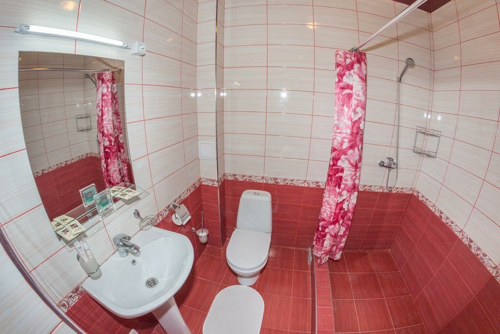 Нас поселили на четвертом этаже. Двухместный номер просторный, чистый. Окошко маленькое, но вид хороший на город. Из минусов только, что рано утром трамваи слышно и окно не открыть, спать мешают. Хорошо, если есть с собой беруши! Ещё бы хотелось полочку дополнительно в санузле. Косметичку только на раковину можно поставить, а там обычно мокро. И вешалка-крючок для одежды и полотенец была бы кстати. То, что имеется на двоих маловато. В целом всё понравилось, дом приличный, рядом остановка, магазины, до кафе пешком не далеко, персонал отзывчивый, приятный! Спасибо за гостеприимство!!!