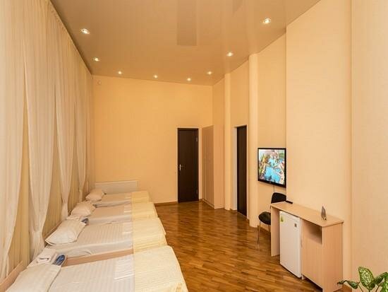 - Вежливый и отзывчивый персонал.; Просторные номера.; Белоснежное бельё и полотенца.; Удобно для групп (размещение большого количества людей).; Близость к клинике Фёдорова.