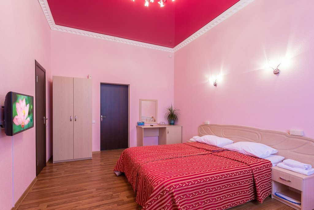 Хороший выбор номеров. Разместились 16 человек без проблем. В номерах чисто. Белье белоснежное. Администратор вежлив. Есть стаканы в номерах. Кулер с кипятком на этаже. Потолки высокие.