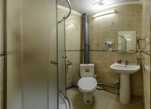 Микроскопические комнаты, хотя на фотографиях смотрятся внушительно. Странные порядки типа того , что в 23:00 двери закрываются. Не селят украинцев, а кавказцам и азиатам можно. После 23:00 нельзя пользоваться стиральной машиной, но в другое время они (их две) заняты. Wi Fi есть формально. Скорость слабая. Если ставишь машину внутрь. то бывает трудно уехать так, как администратоы открывающие шлагбаум зачастую могут уйти куда-то и их надо бегать искать.