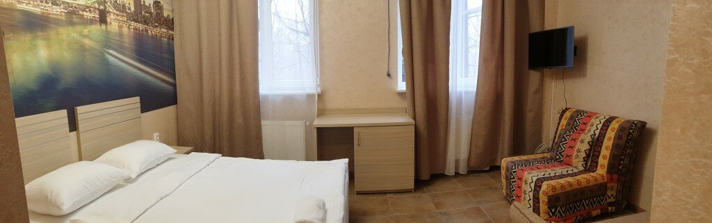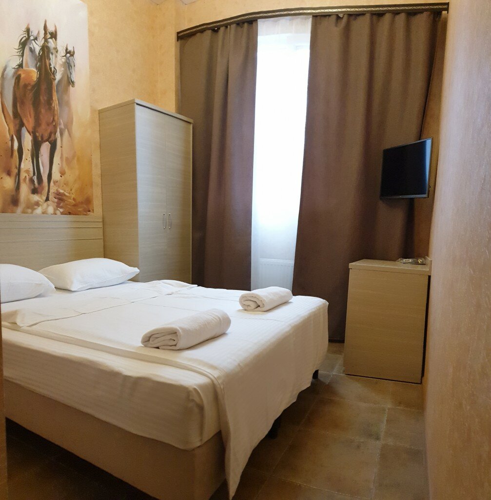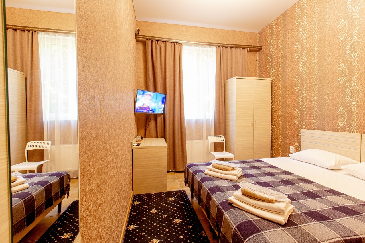 Ехали с Крыма останавливались переночевать, супруга бронировала номер прям из машины, всё обговорили довольно быстро. Несмотря на то, что бронировали уже за полночь- номер к нашему приезду был подготовлен. Номер не большой, но мы вчетвером+1(я, супруга и двое детей+наш Лабрадор) разместились нормально! Огромный плюс, что в отель разрешились собакой (хоть и за символическую доплату + 300(Я так думаю доп сбор за доп уборку-шерсть и все такое)). В номере есть душ+туалет(маленький тесненький но есть). С парковкой дела обстоят не очень- перед отелем 2 кармана на 3-5 машин) нам повезло — встали рядом. В целом рекомендую к посещению (бронировать лучше заранее, нам повезло- бронь сняли буквально за несколько минут до нашего звонка!)