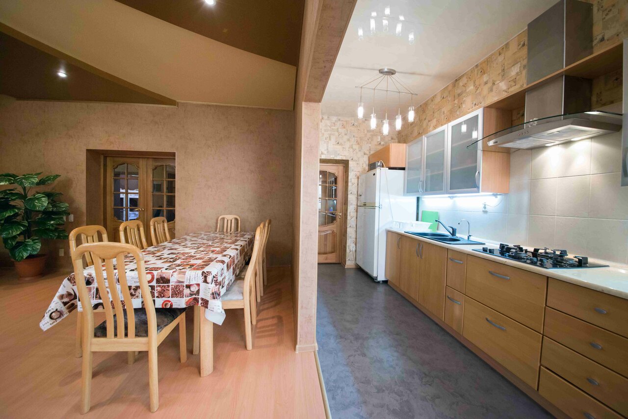 Эта очень хорошая гостиница, уют, чистота, порядок. Есть кухня со всеми приборами и большая столовая, тихо и уютно. Обстановка по кайфу. Цена минимальны- советую всем.