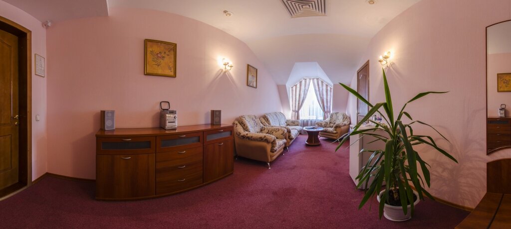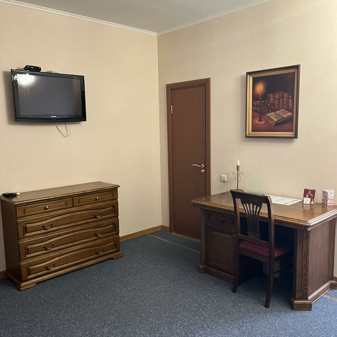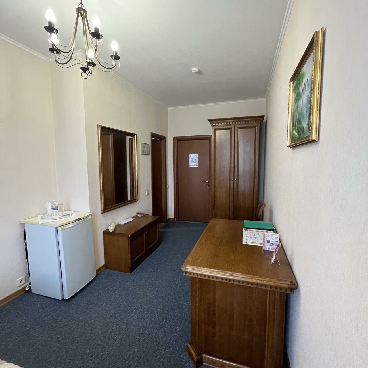 Обслуживание 0, снимал номер на 5дней, повесил на дверь -не беспокоить на 3 день снял, чтобы убрали номер. Ни кто не пришел еще 2 дня. Полная халатность к уборке в номерах. Вход расположен не там , как вы видите фото, там отдали на ‘откуп’ ГИБДД.Сам вход расположен справа, на краю здания. Ресепшен на 2 ом этаже. Всего три этажа.В номере уютно, кондей, телевизор, холодильник, ванная с туалетом. Wi-fi он есть при входе в хол, как только проходишь в номер, вайфай говорит до свидания. Рядом есть ресторан, меню вроде норм, но сам ассортимент готовой продукции скудный. отбивная была с кислинкой и сухая. Одним словом не советую.