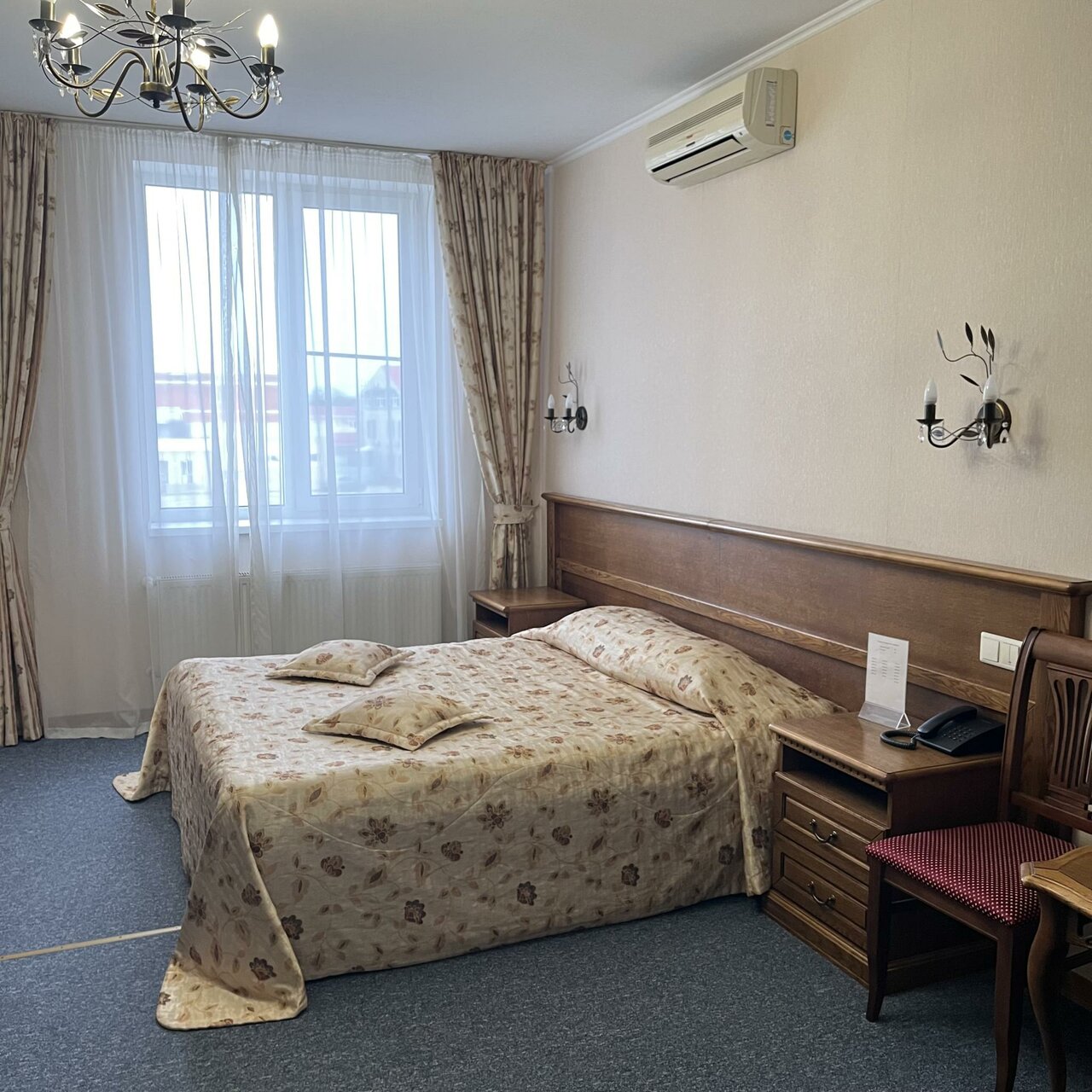 Небольшая уютная гостиница, понравилась- в номерах всё необходимое, крепкая мебель,на кровати удобный матрас.