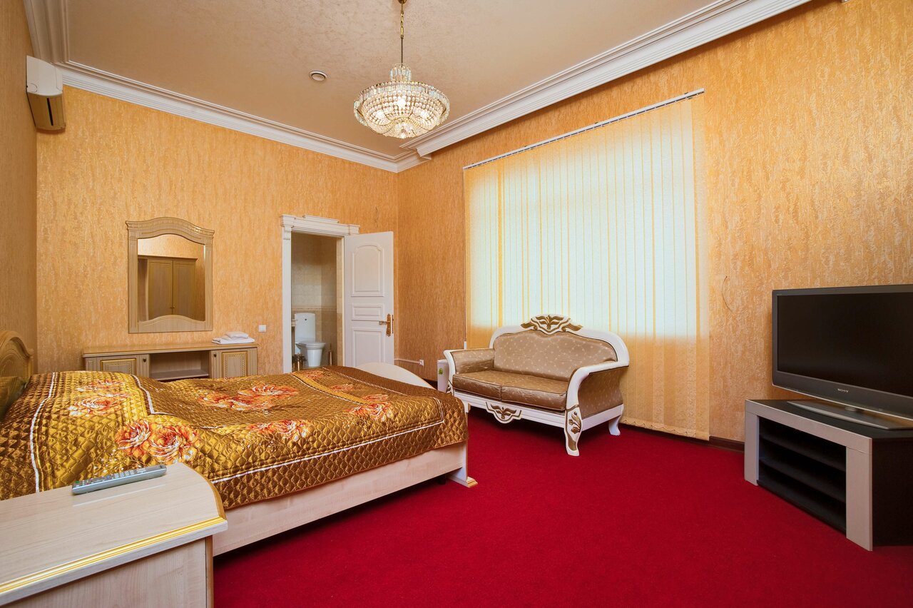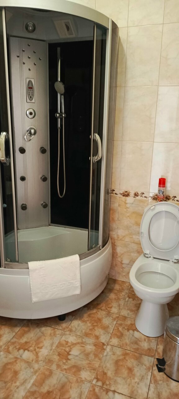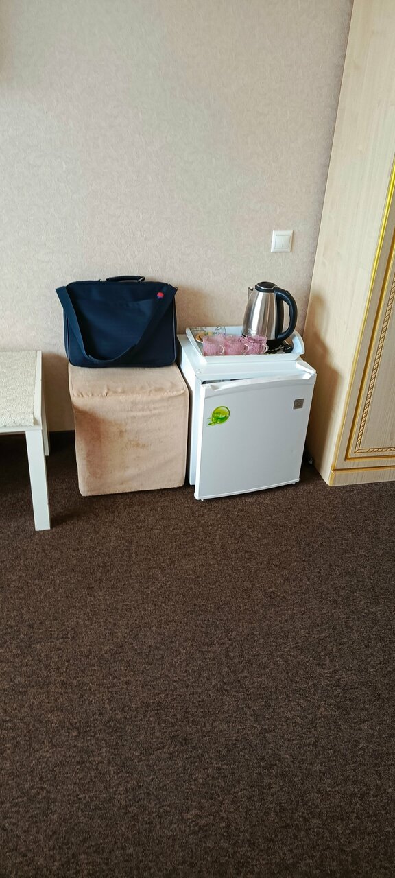 - В номере есть всё необходимое (чайник, душевые принадлежности, тапочки, полотенца).