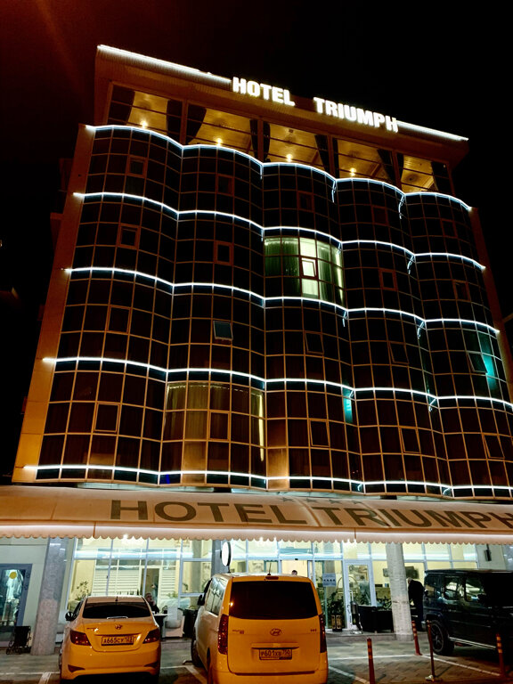 Дополнительно: лифт, фен, сейф, терраса, ускоренная регистрация. Даты: постройка и реконструкция — 2012 г. Контакты: hoteltriumph.ru, +7 (958) 538-39-52. Заезд/выезд: 14:00 / 12:00.