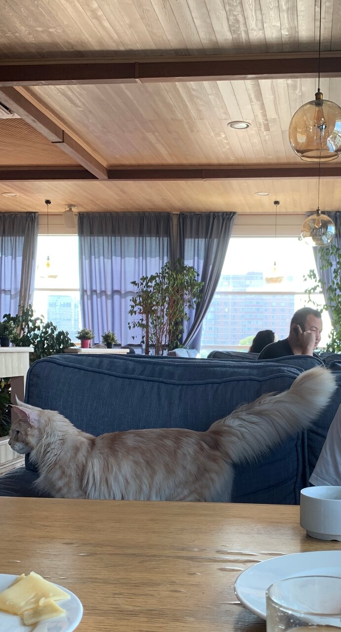 Место мне понравилось. Вид достаточно необычный — находятся на 6 этаже. Работают долго, можно не следить за временем. Еда вкусная, цена приемлемая. Уютно, красиво, есть аквариумы с рыбками. Живая музыка скорее на любителя, но для разнообразия послушать можно. Из минусов: не удалось дозвониться в сам ресторан и узнать наличие свободных мест (хорошо что по факту они были). Чайник для чая был без сеточки, так что все веточки были в кружках.