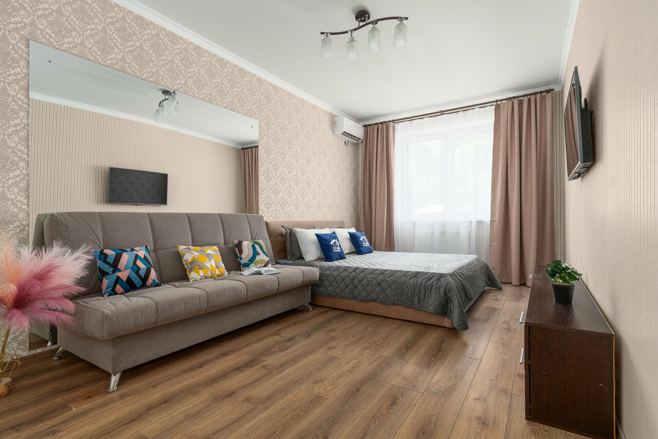 Квартира чистая, уютная. Удобно, что есть диван на кухне. Расположение рядом с парком, магазины поблизости. Заселение в удобное время. Все понравилось, рекомендую.
