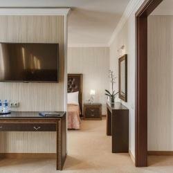 - Кулер с водой на этаже.; Наличие ресторана и бара.; Наличие необходимых принадлежностей (зубные щетки, халаты, фен, полотенца, тапочки).; Удобные кровати.; Наличие сейфа в номере.