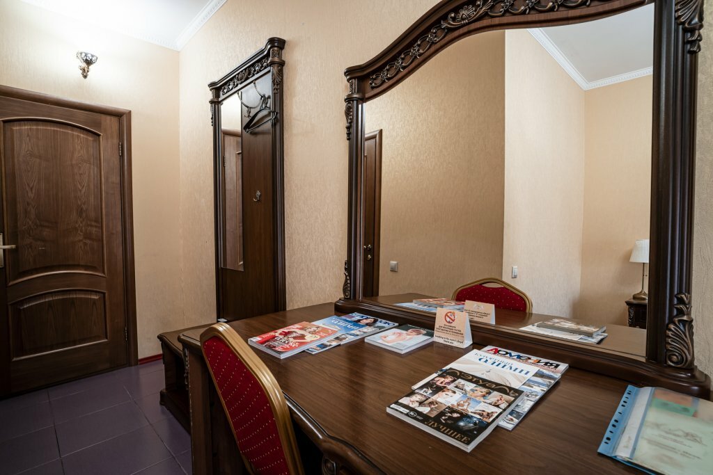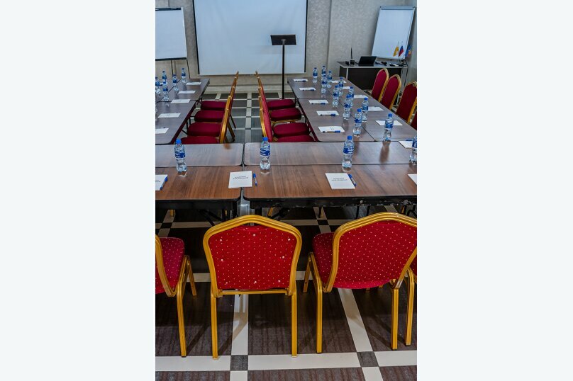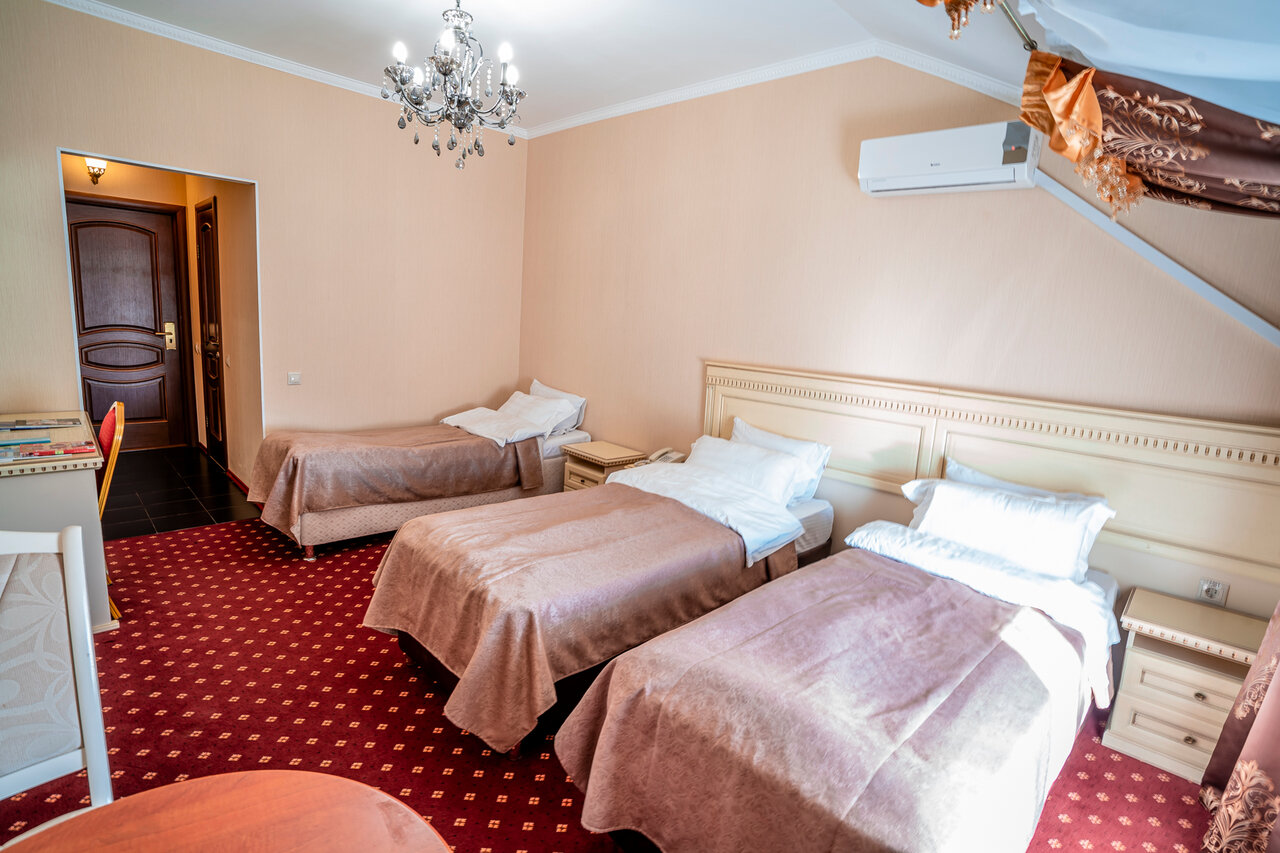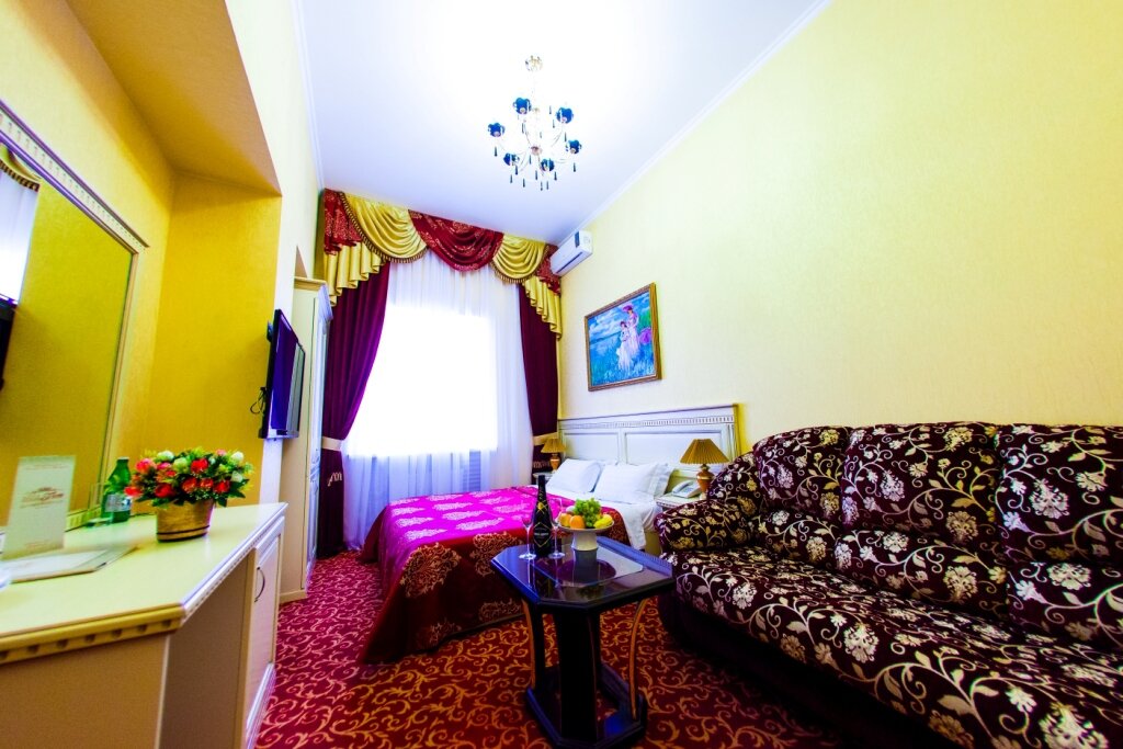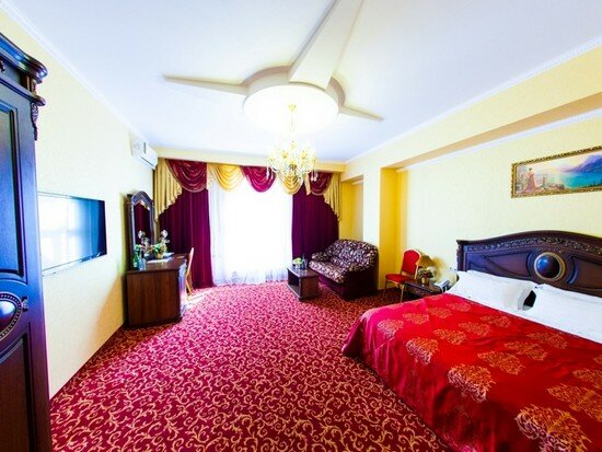 Удобства: — Номера (от 2000 до 5000 ₽/ночь) с кондиционером, Wi-Fi, холодильником, санузлом. — Два бассейна (крытый, подогреваемый), тренажёрный зал, SPA, сауна, хаммам, джакузи. — Ресторан, кафе, бар у бассейна, детское меню. — Парковка (бесплатно), трансфер (аэропорт/вокзал), прокат велосипедов и авто. — Для детей: игровая комната, площадка, стульчики. — Оздоровительные услуги: массаж, салон красоты, солярий.